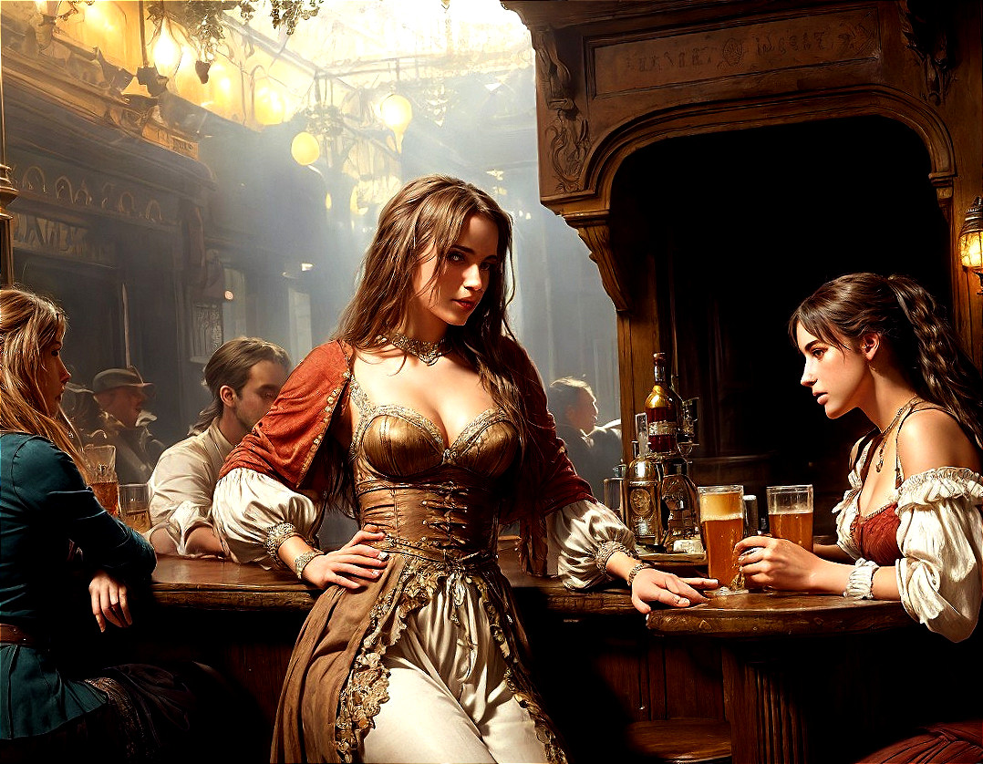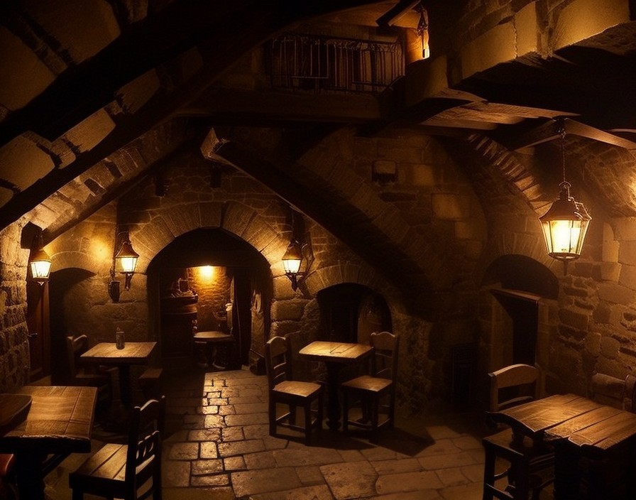 Medieval Tavern Ambiance: Stone Walls & Lanterns