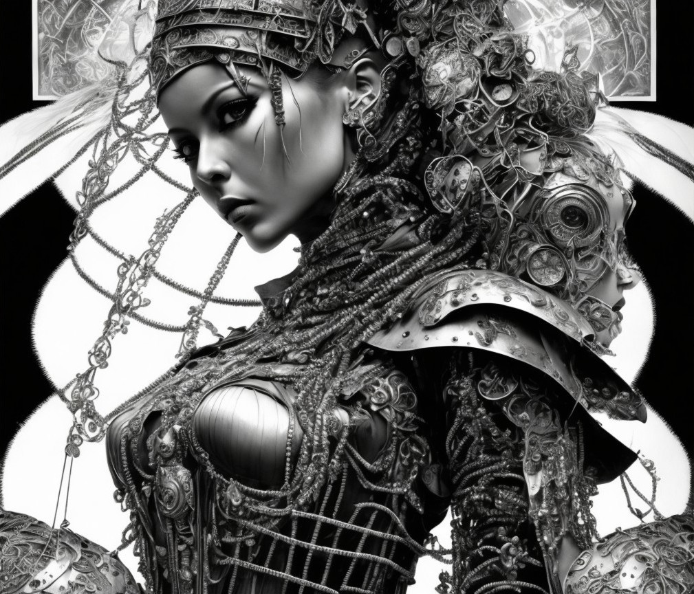 Futuristic Steampunk Female Figure in Monochrome