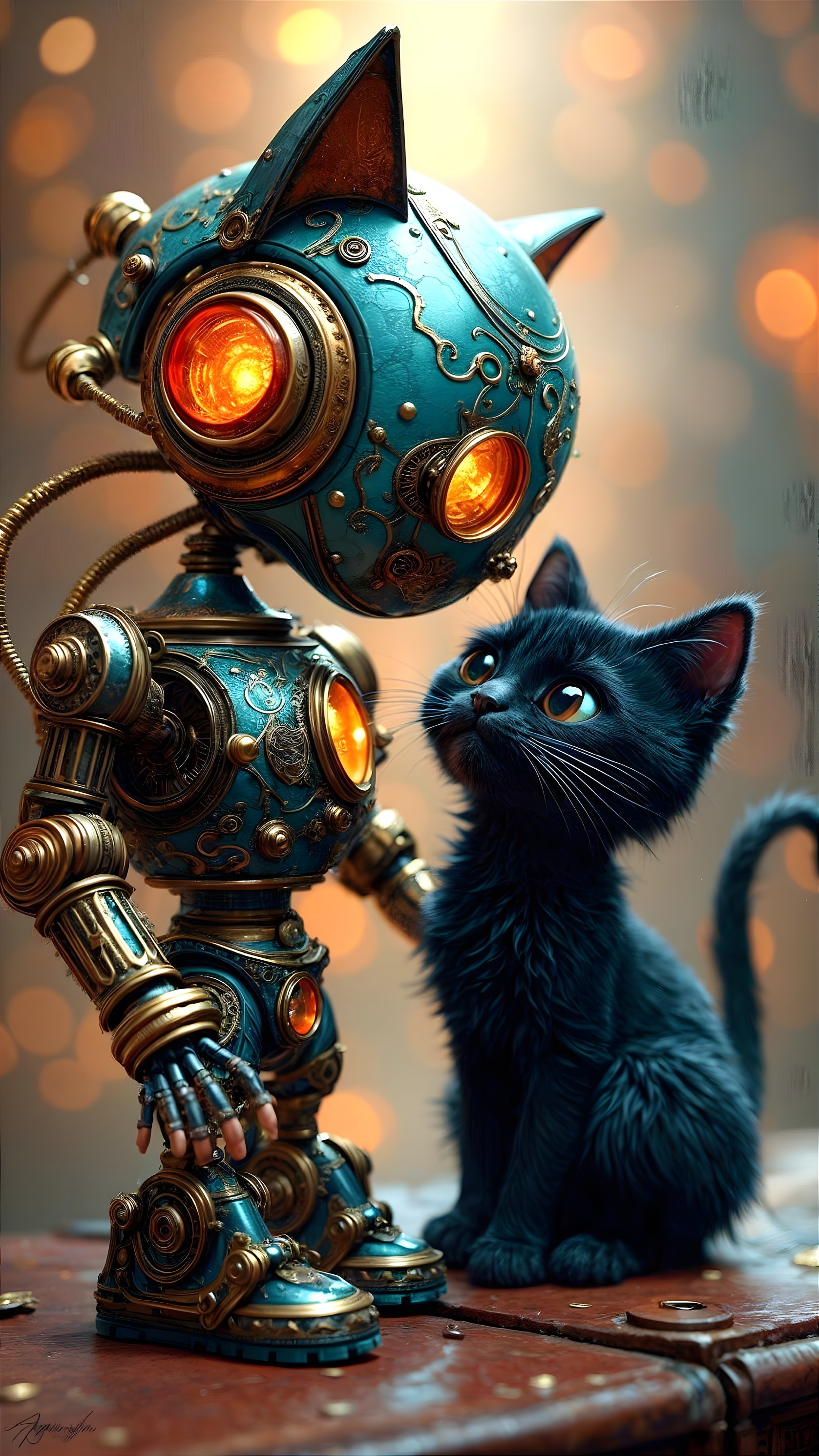Enchanted Clockwork Cat in Fantasy Realm