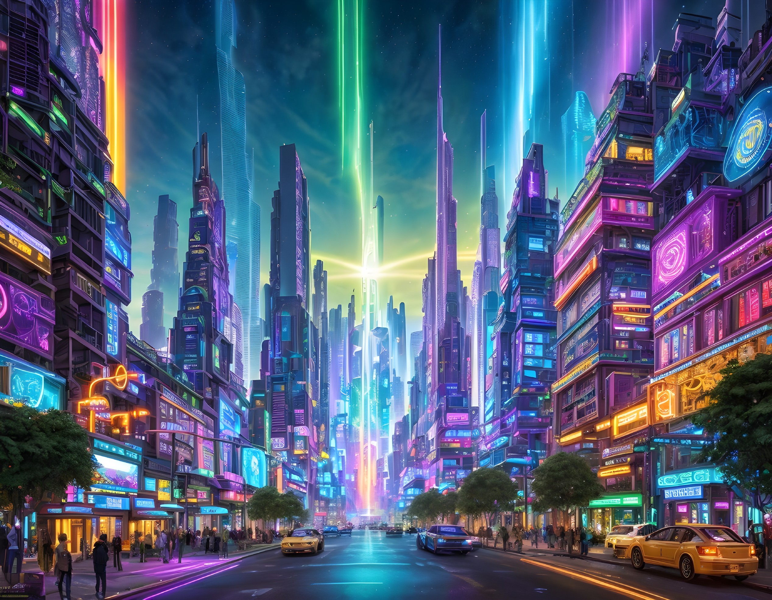 Solarpunk Cityscape: Neon Euphoria