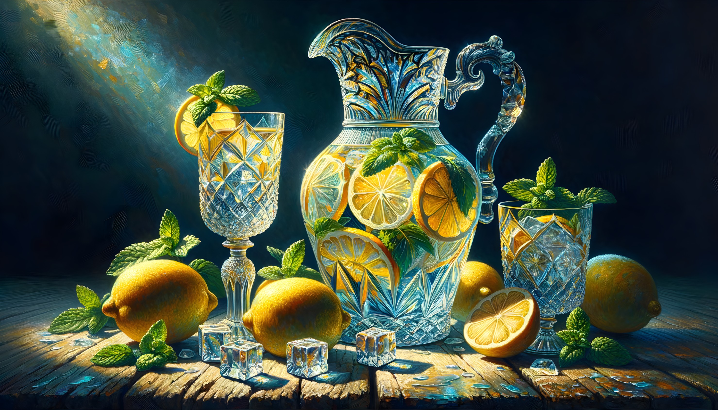 Crystal Elegance: Lemon and Mint Still Life