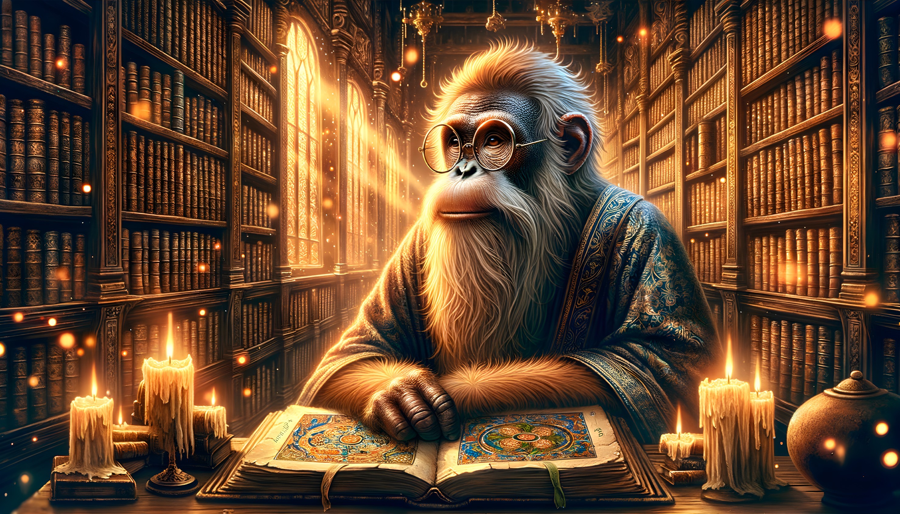 Sage Ape in Ancient Library