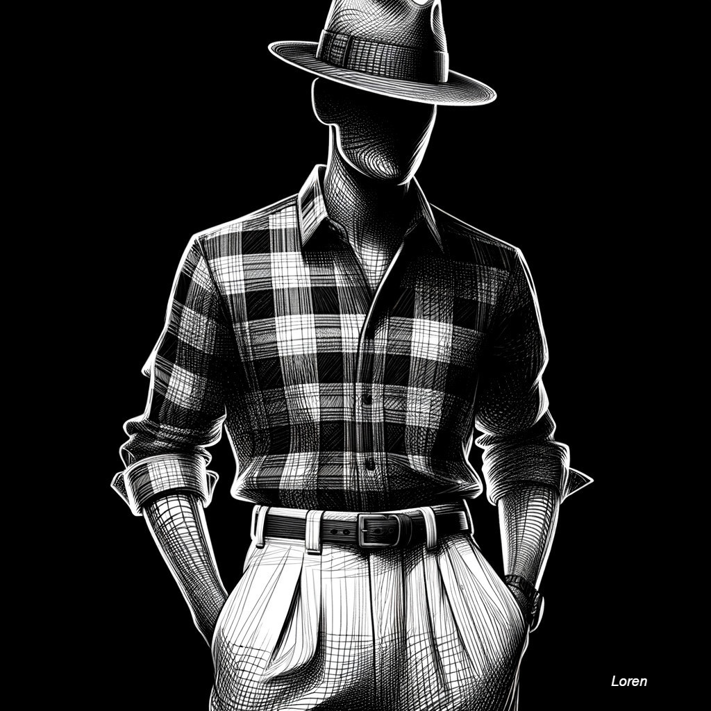 Monochrome Style: Plaid Shirt and Hat
