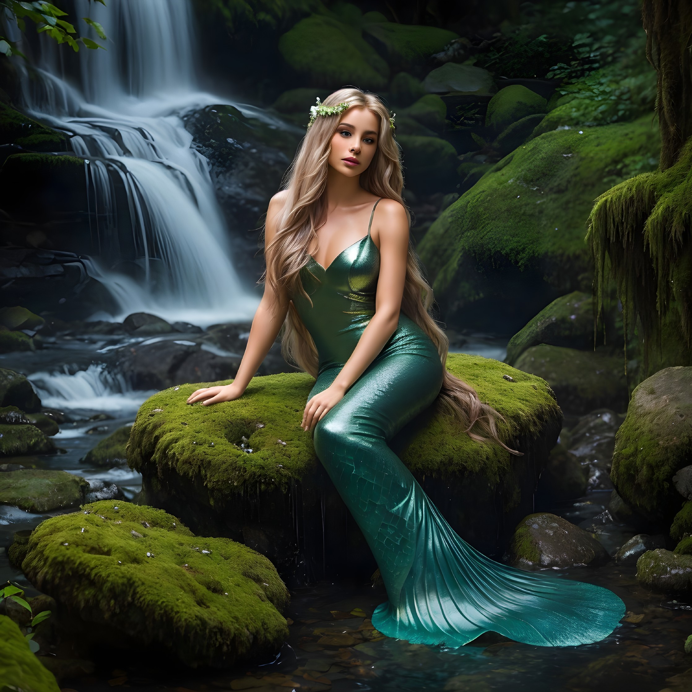 Enchanted Waters: Moonlit Mermaid in Cascade