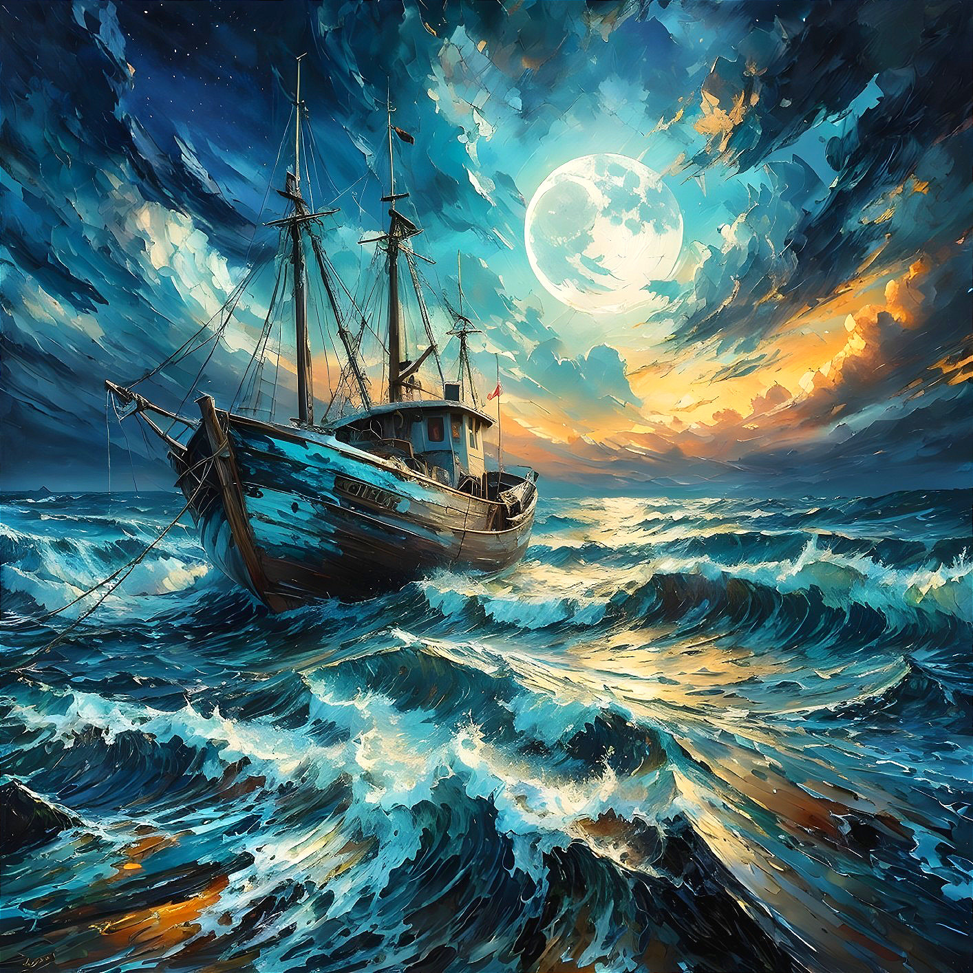 Moonlit Seaside Enchantment: A Fantasy Oil Painting
