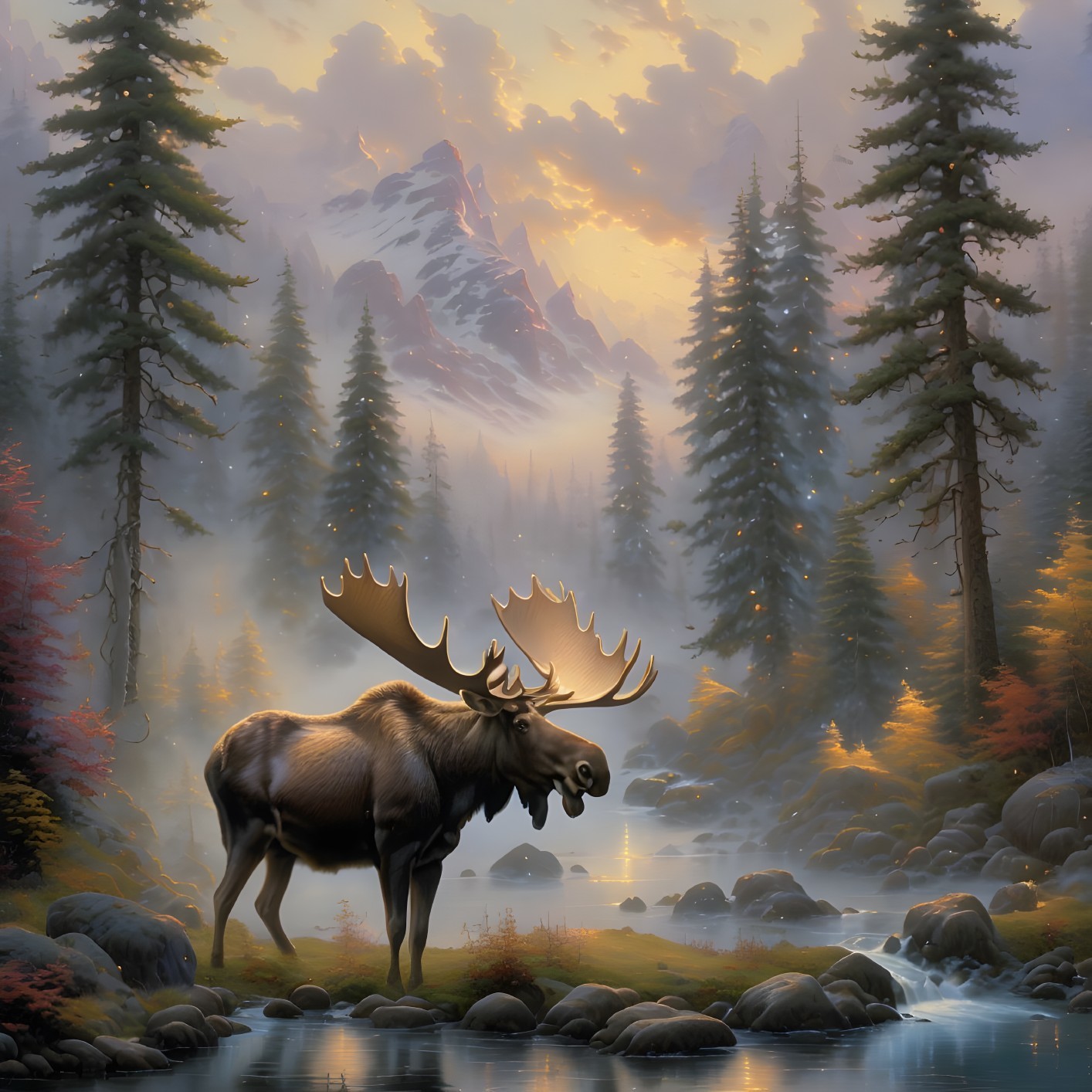 Majestic Moose by a Tranquil Sunset Lake in Sweden