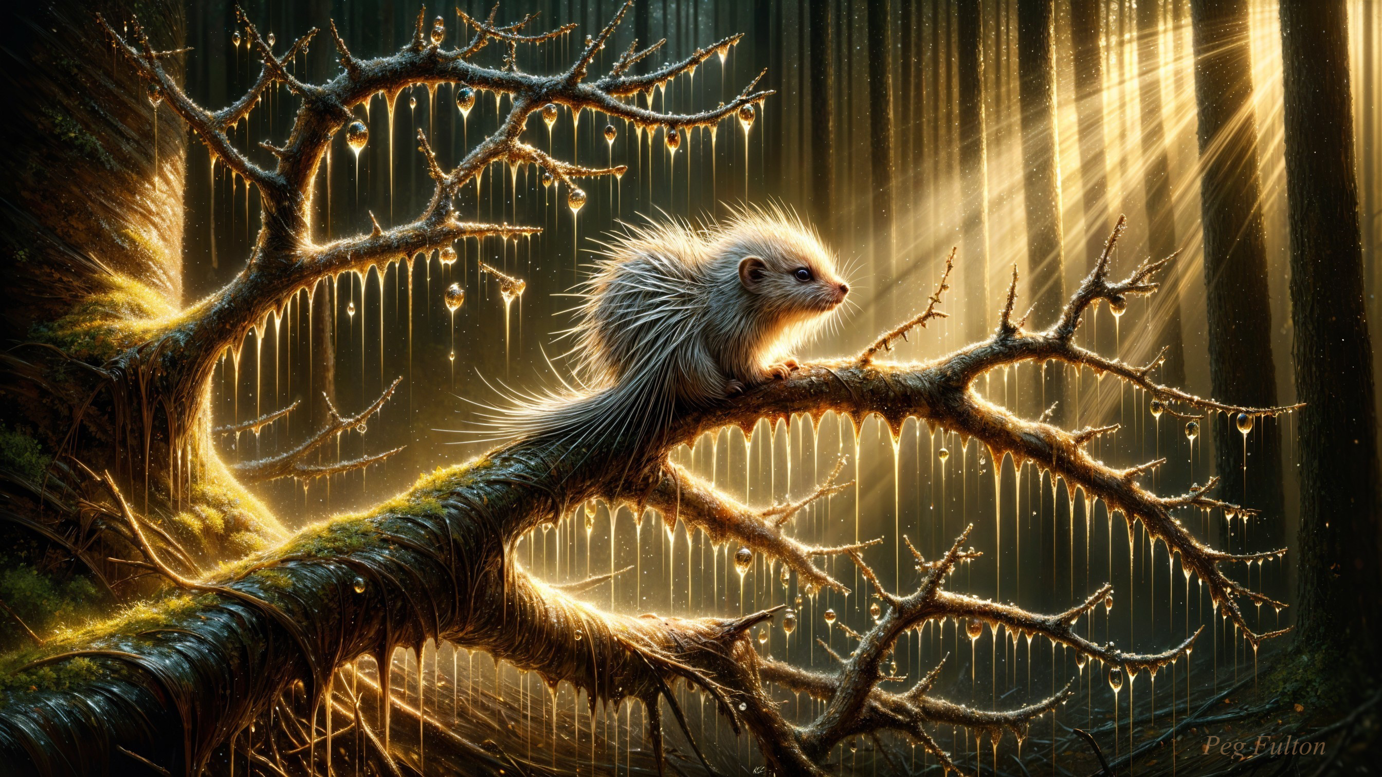 Whimsical Rainbow Creature in Serene Forest