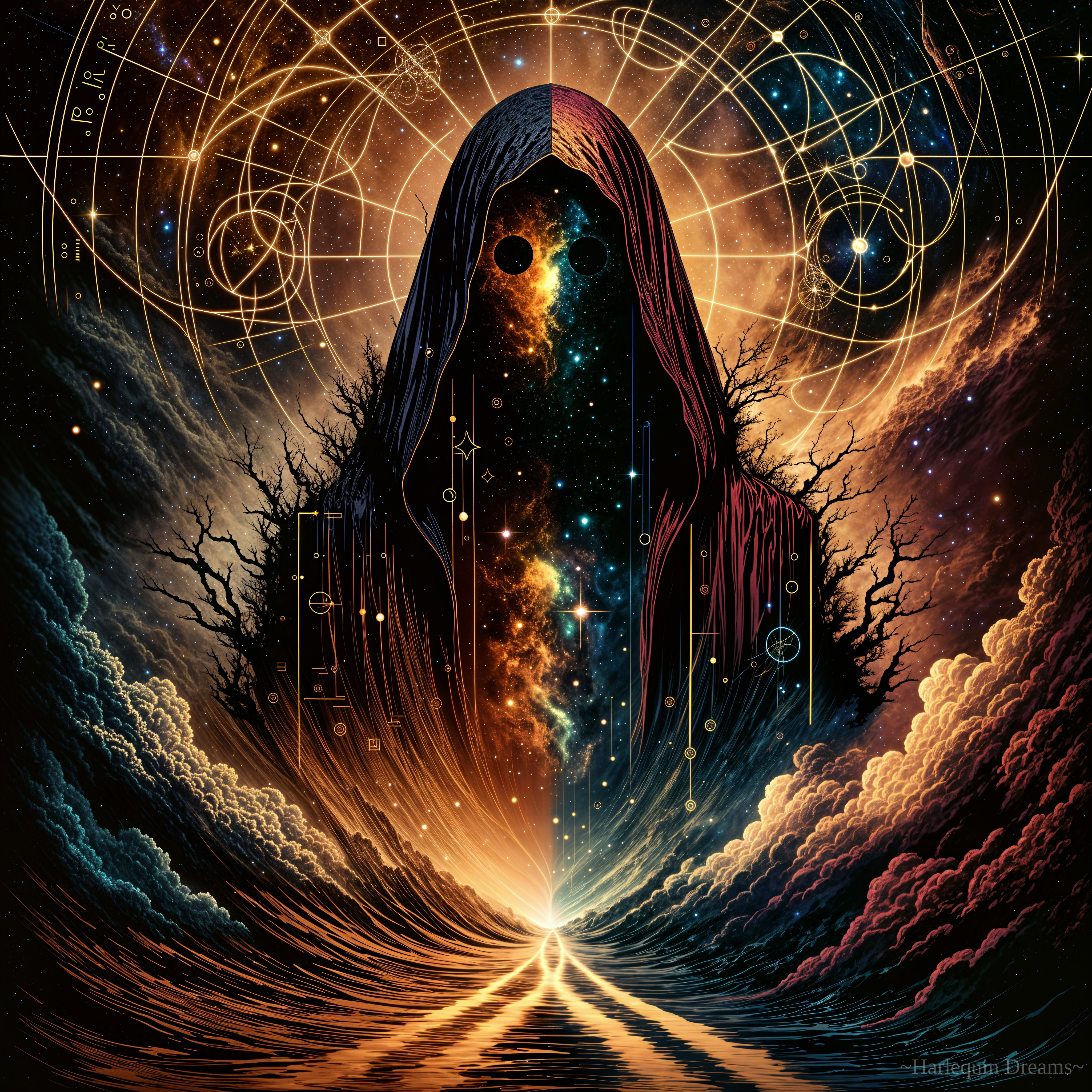 Cosmic Cloaked Figure in Galactic Realm