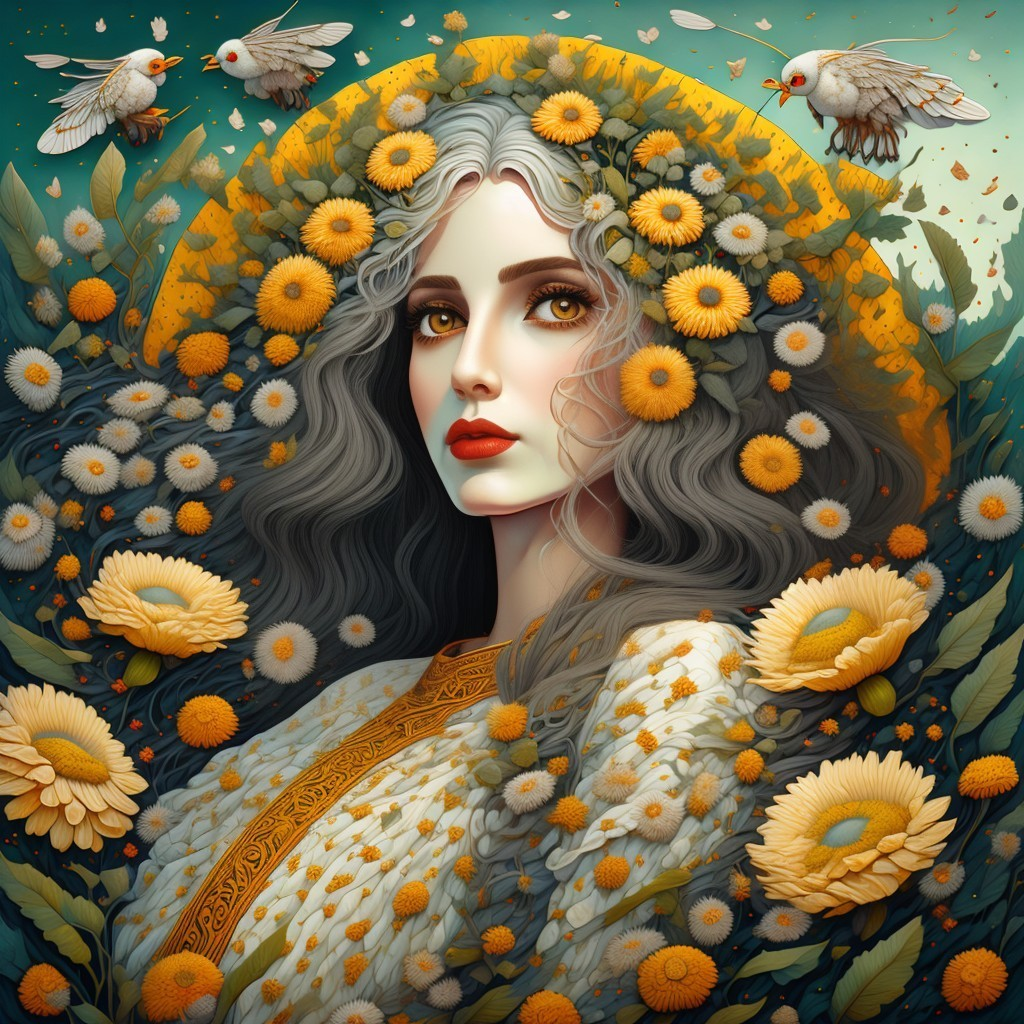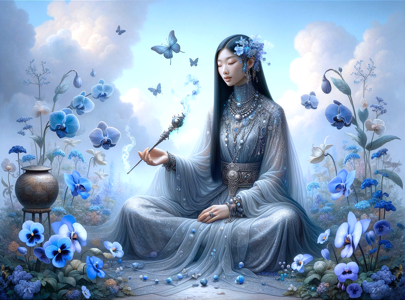 Mystical Beauty: Blue-haired Woman with Floral Crown
