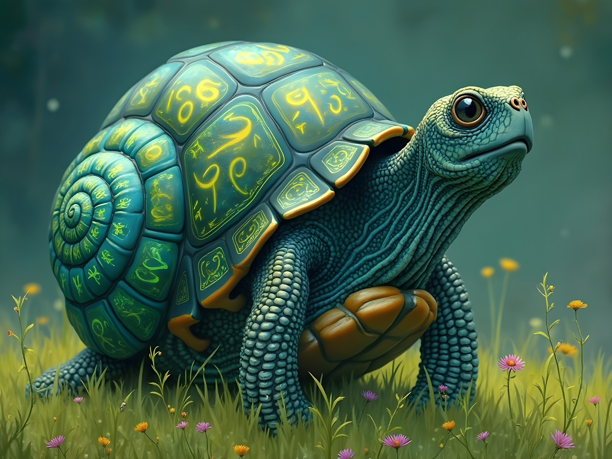 Mystical Turtle in a Vibrant Garden