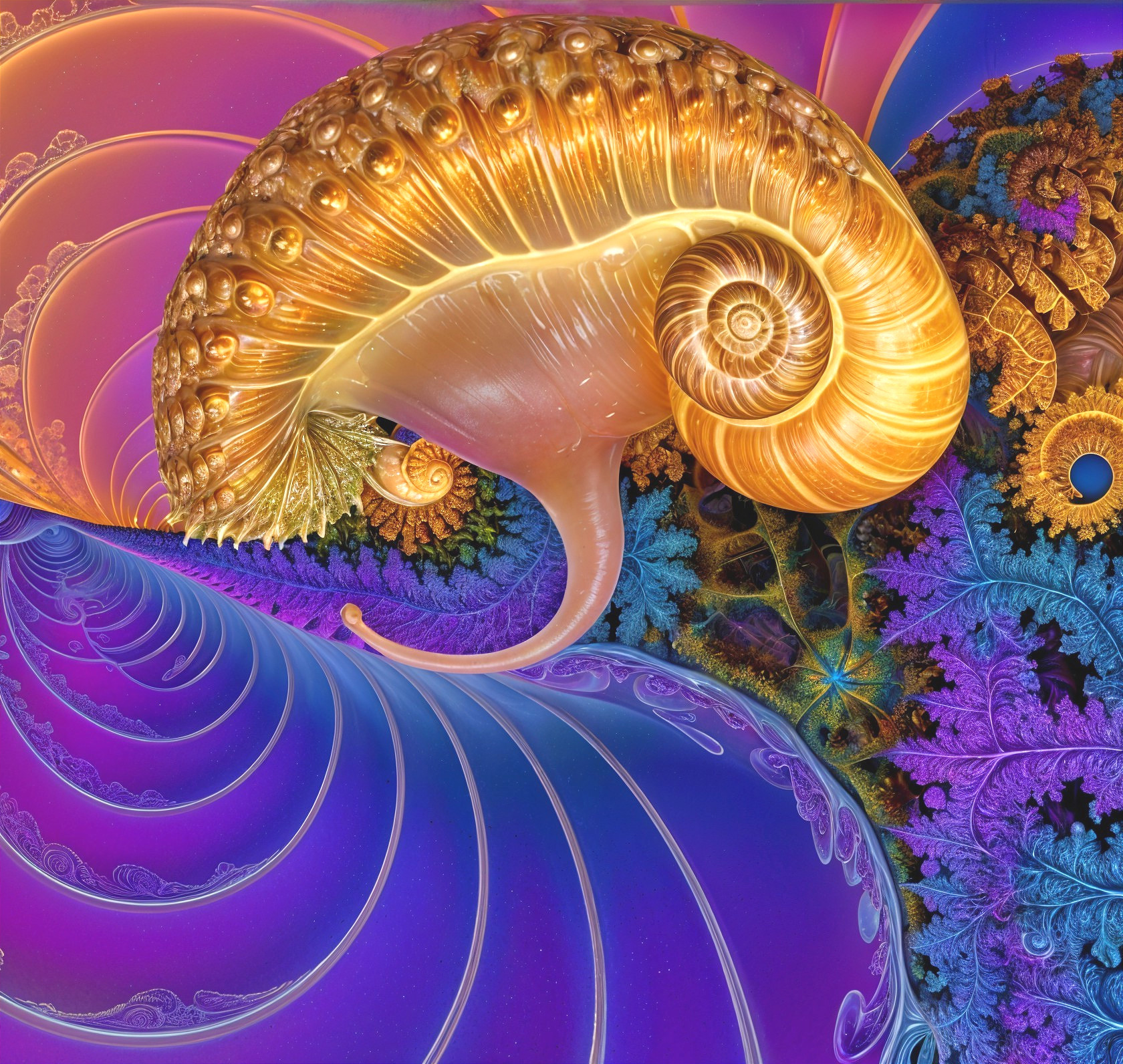 Vibrant Nautilus Shell on Deep Blue Canvas