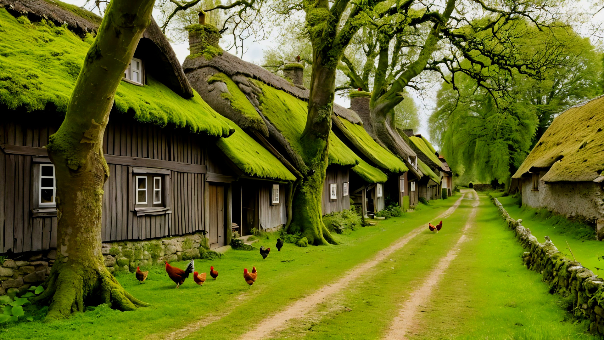 Charming Village Street with Rustic Homes