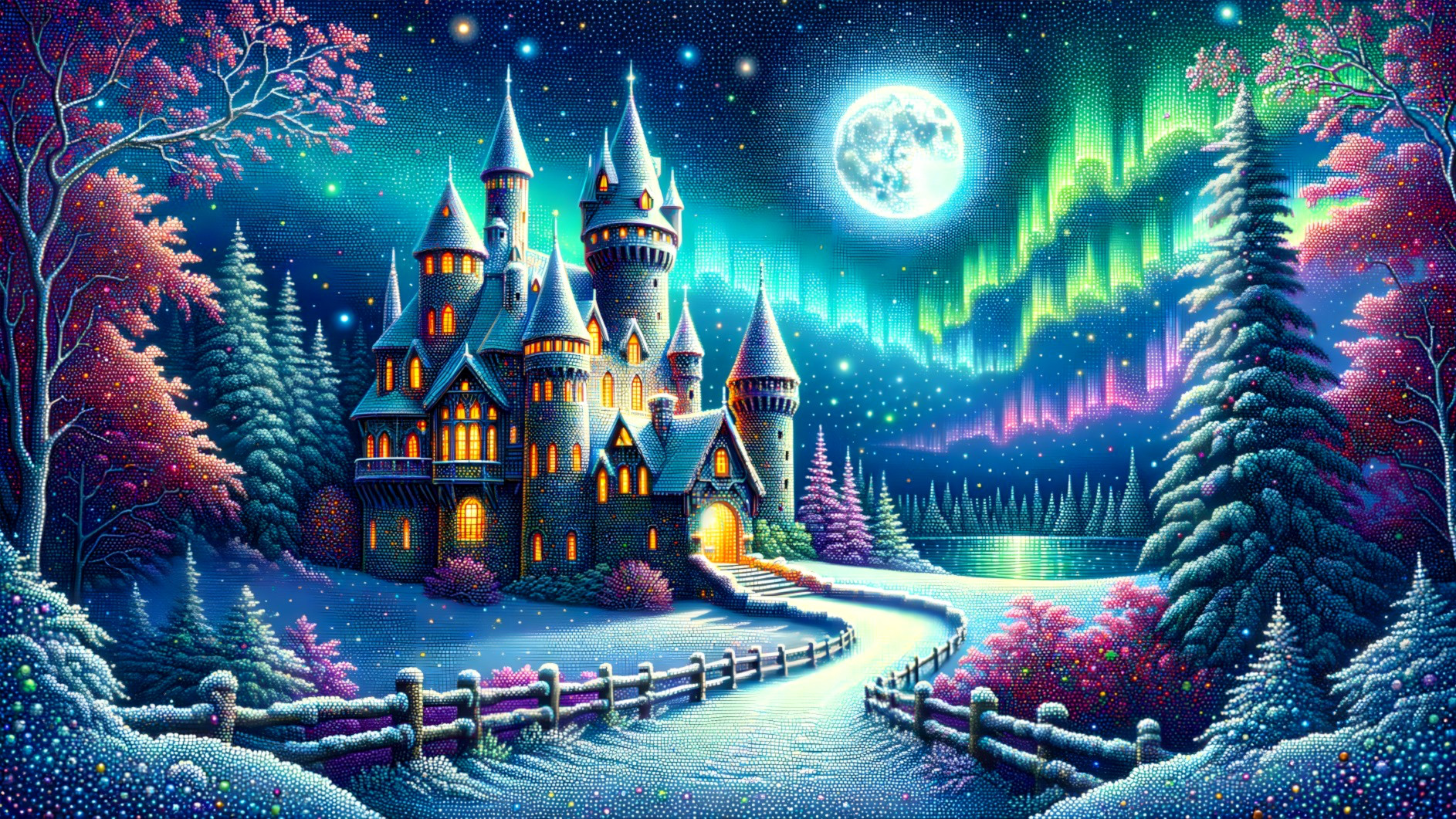 Magical Castle Under Northern Lights