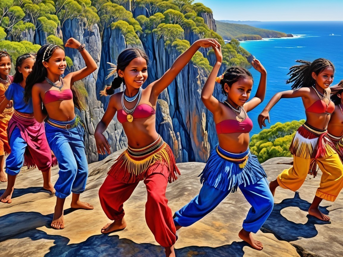 Colorful Dancers Against Ocean View