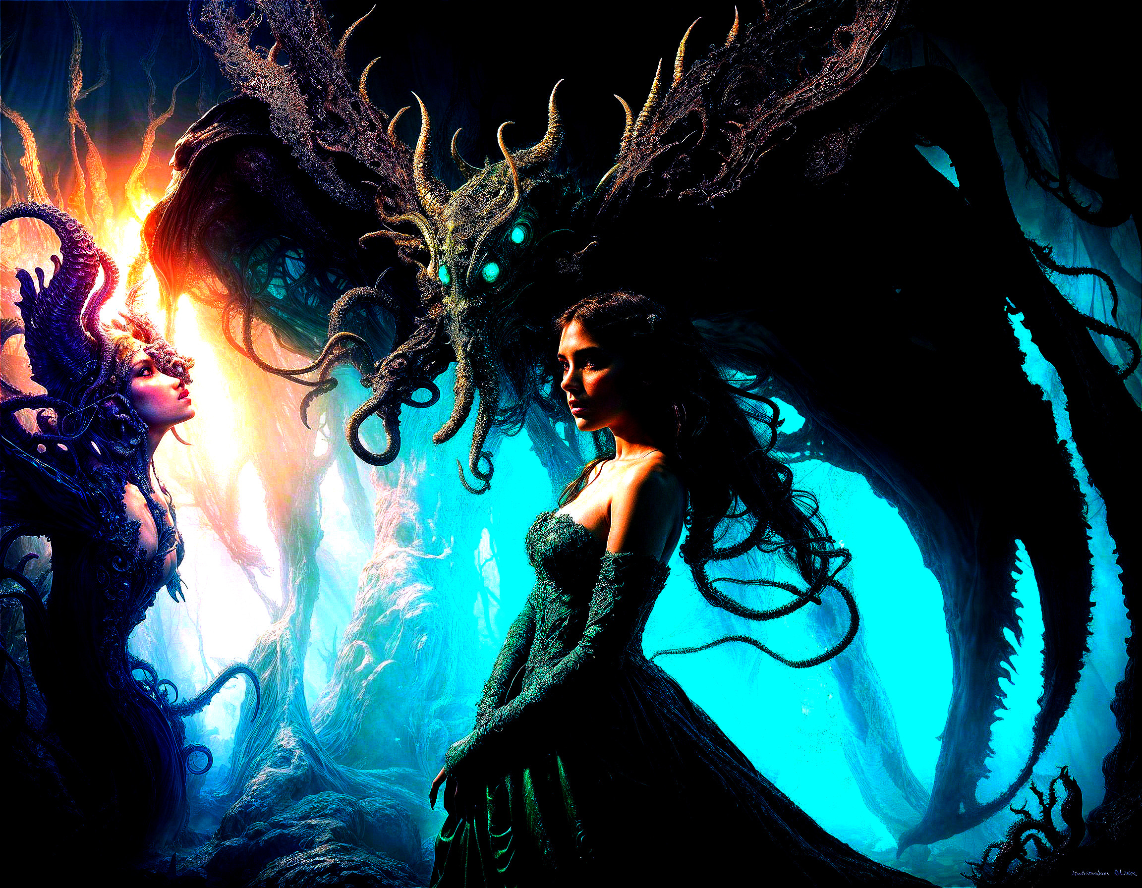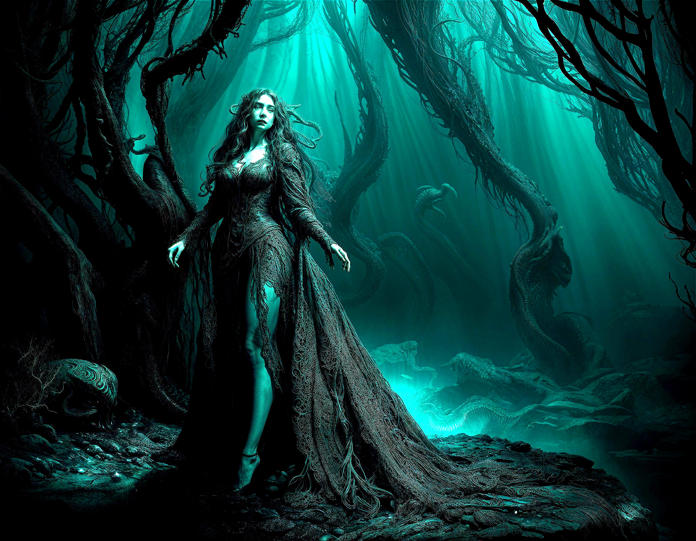 Mythical Romance in an Eerie Forest Depths