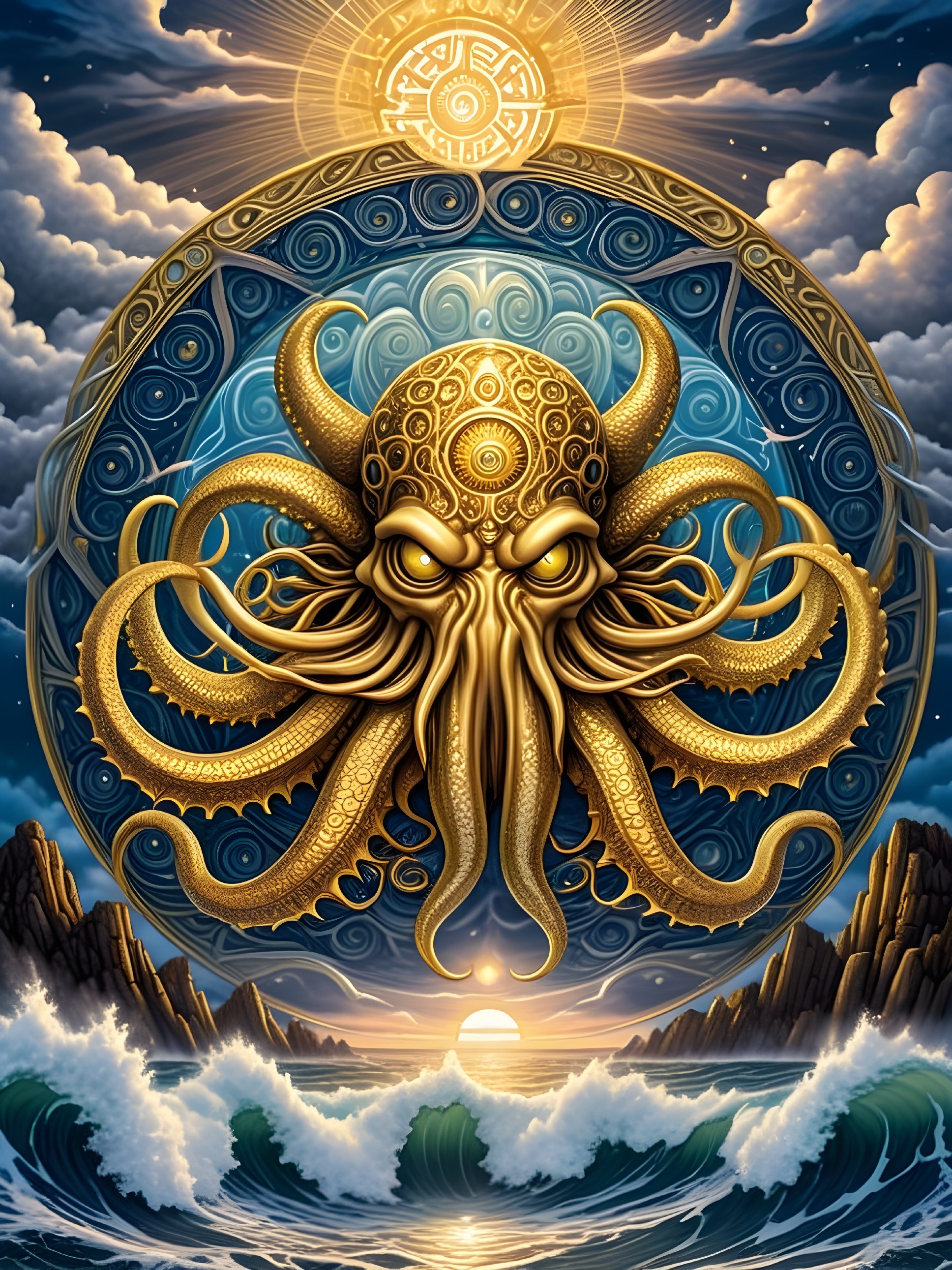 Golden Octopus Under Dramatic Skies