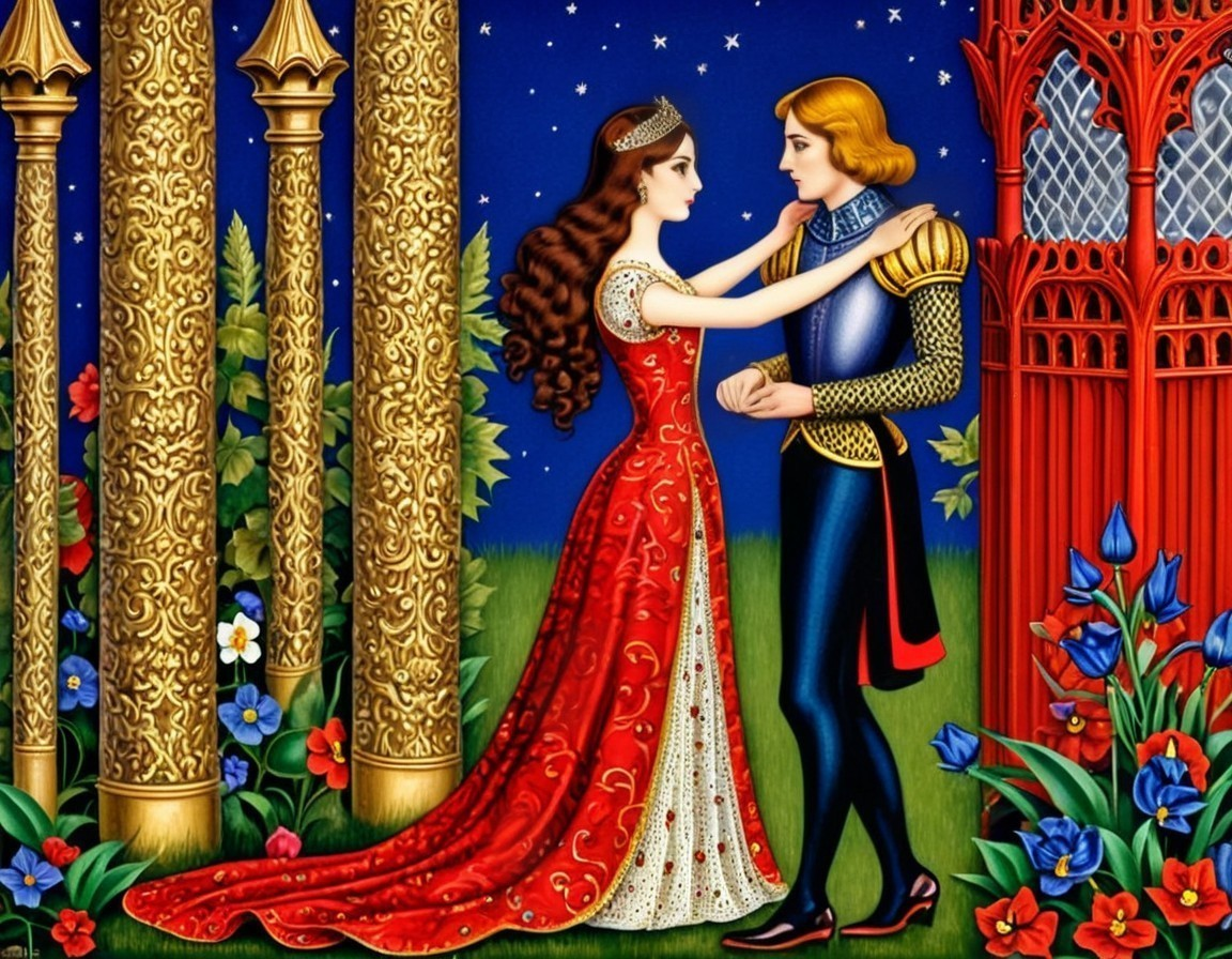 Princess and Knight in a Starlit Garden