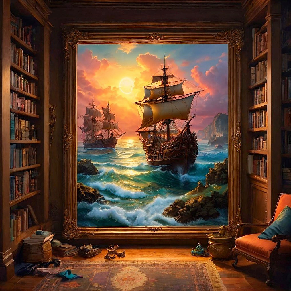 Sailing at Sunset in Cozy Library