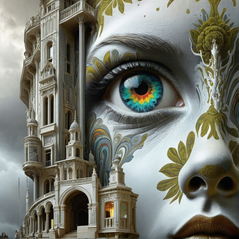 Surreal Faces and Vibrant Patterns Unite