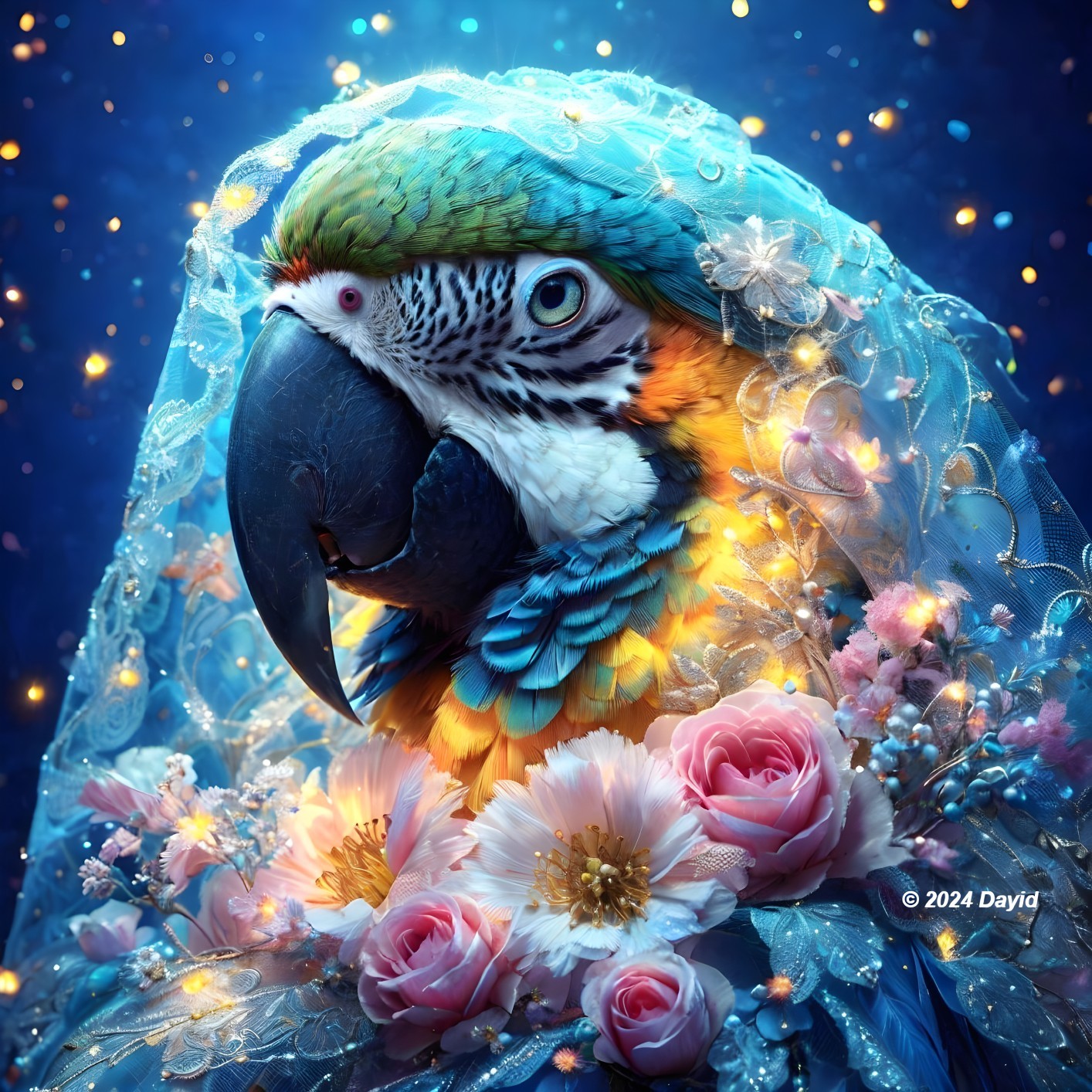 Vibrant Parrot: Starry Feathers