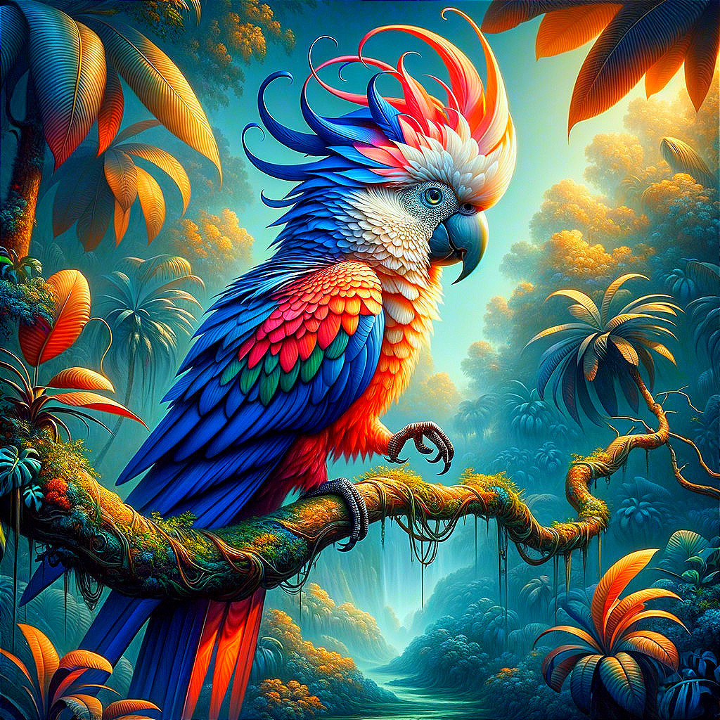 Psychedelic Parrot: Intricate Rainforest Masterpiece