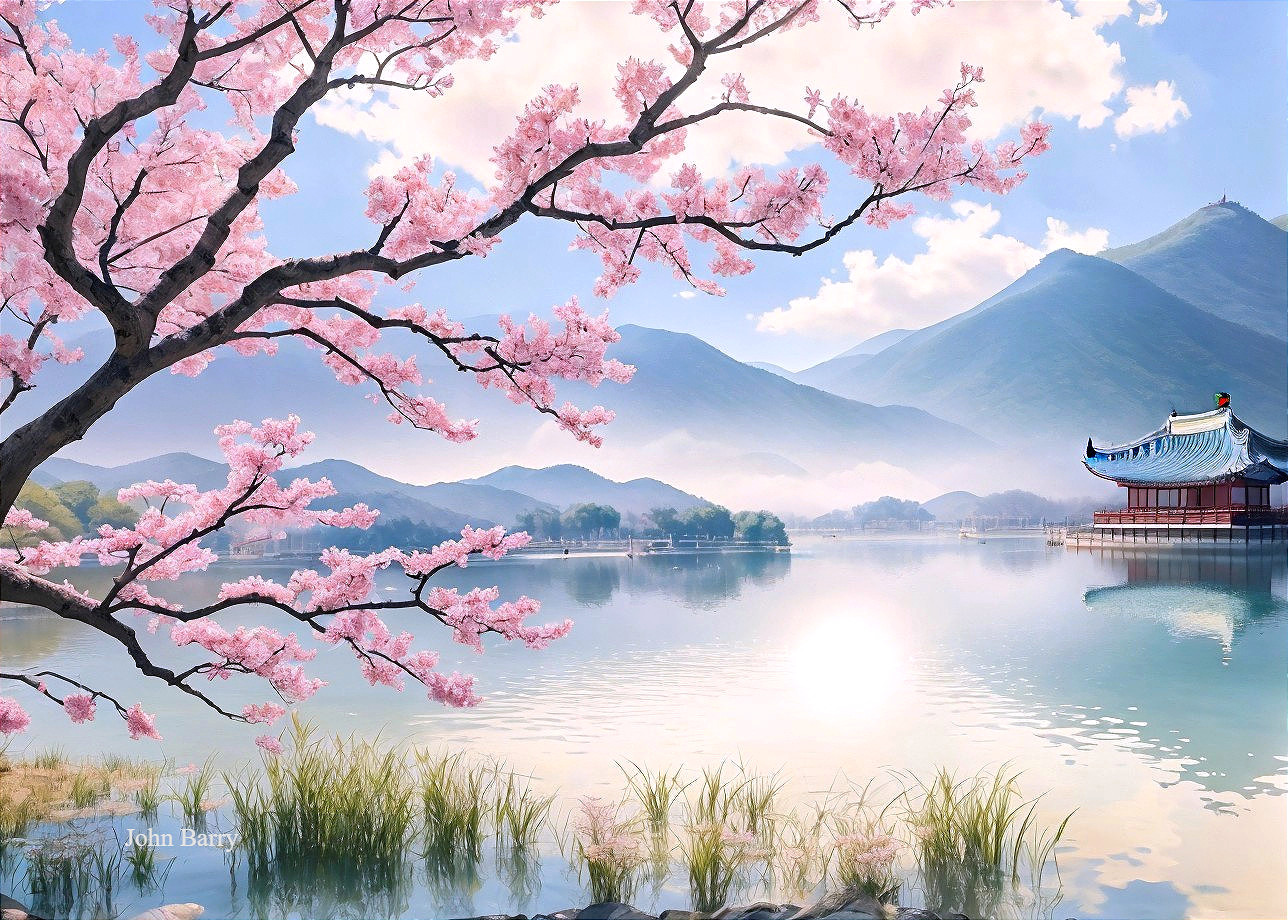 Tranquil Cherry Blossom Lakeside