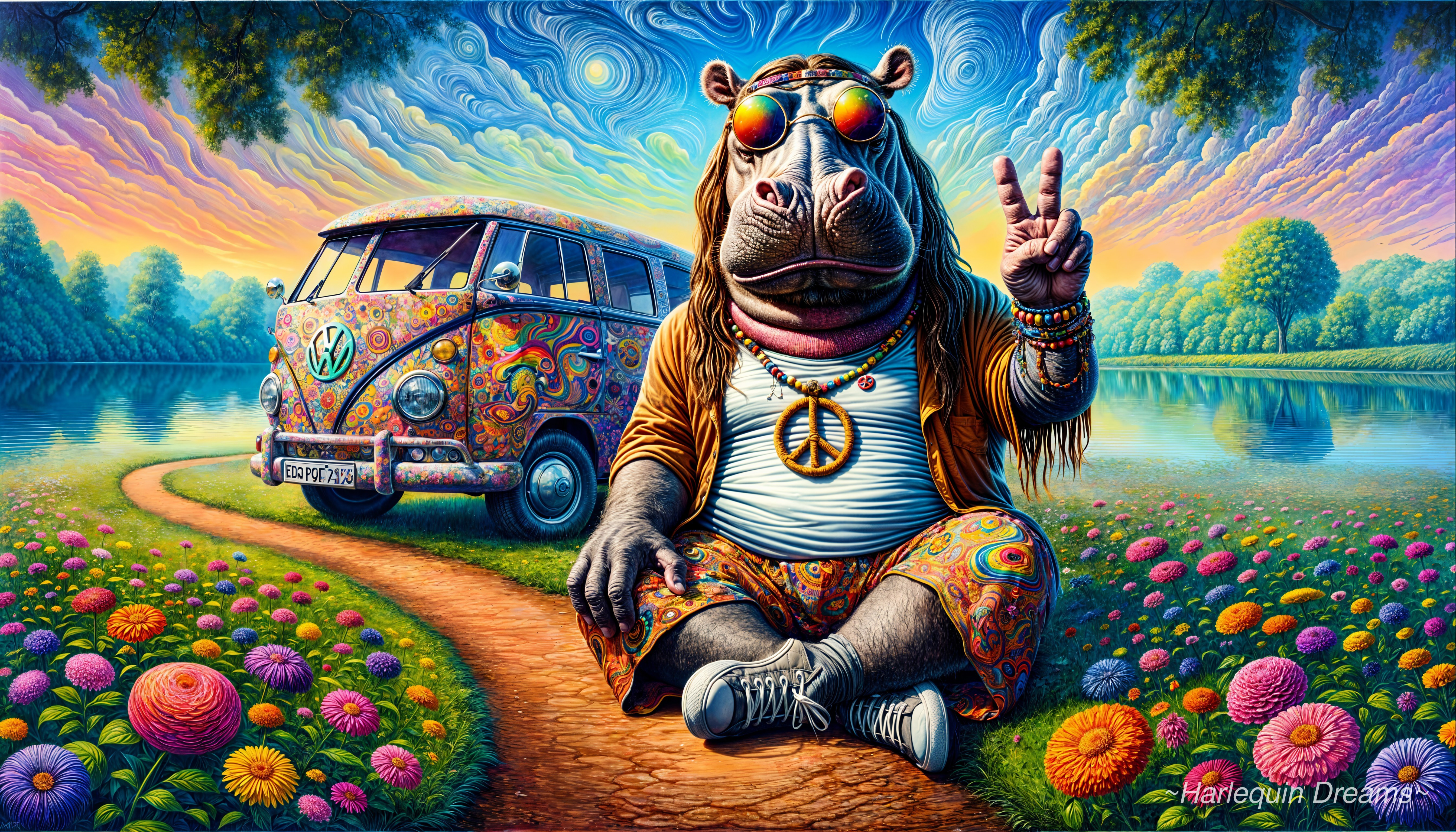 Peaceful Hippie: Whimsical Oil Paint Fantasy