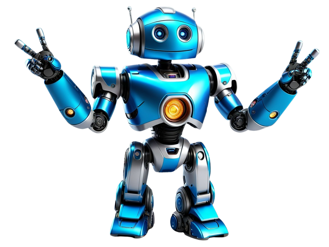 Cheerful Blue Robot in Peace Sign Pose