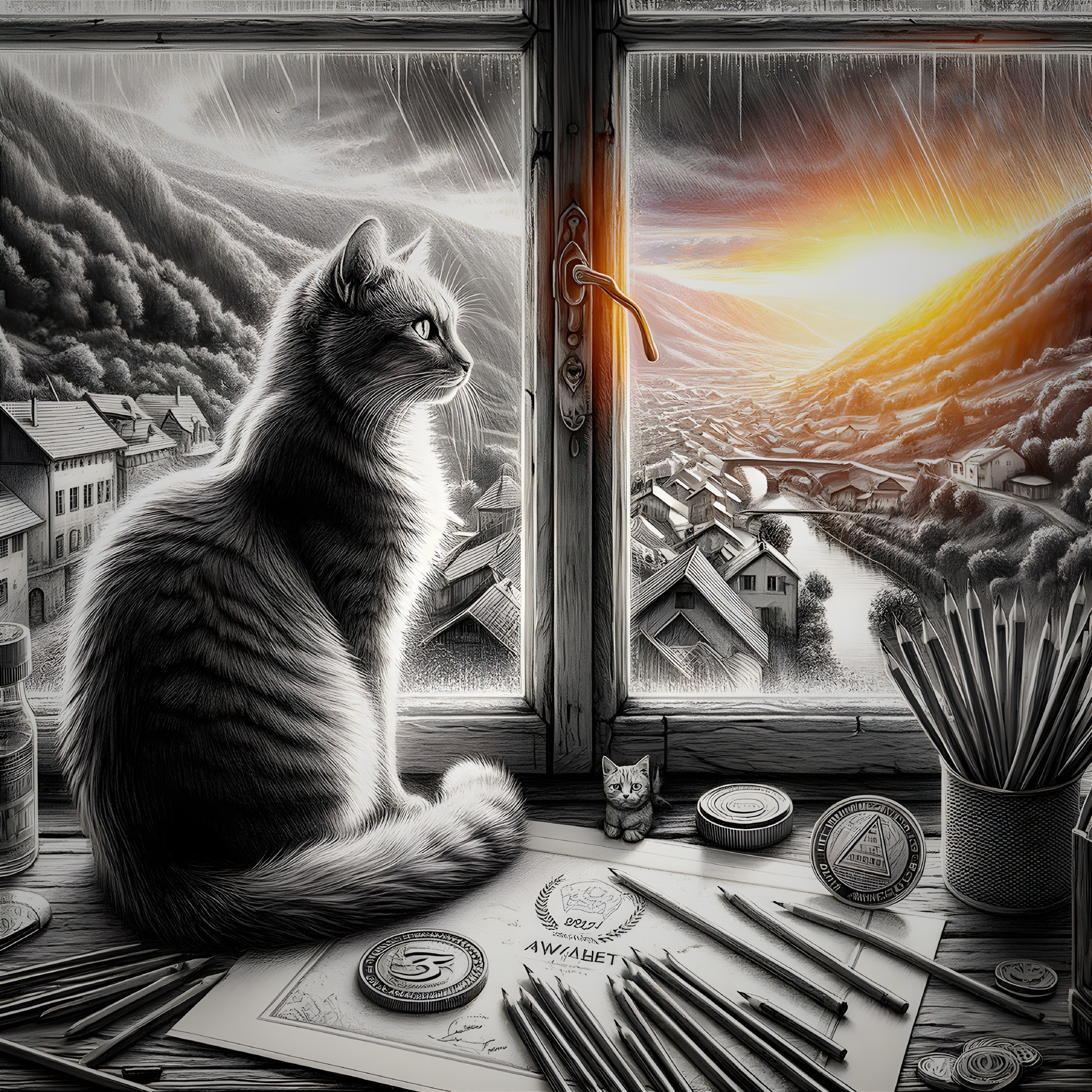 Village Cat: Intricate Lighting and Fantastic View