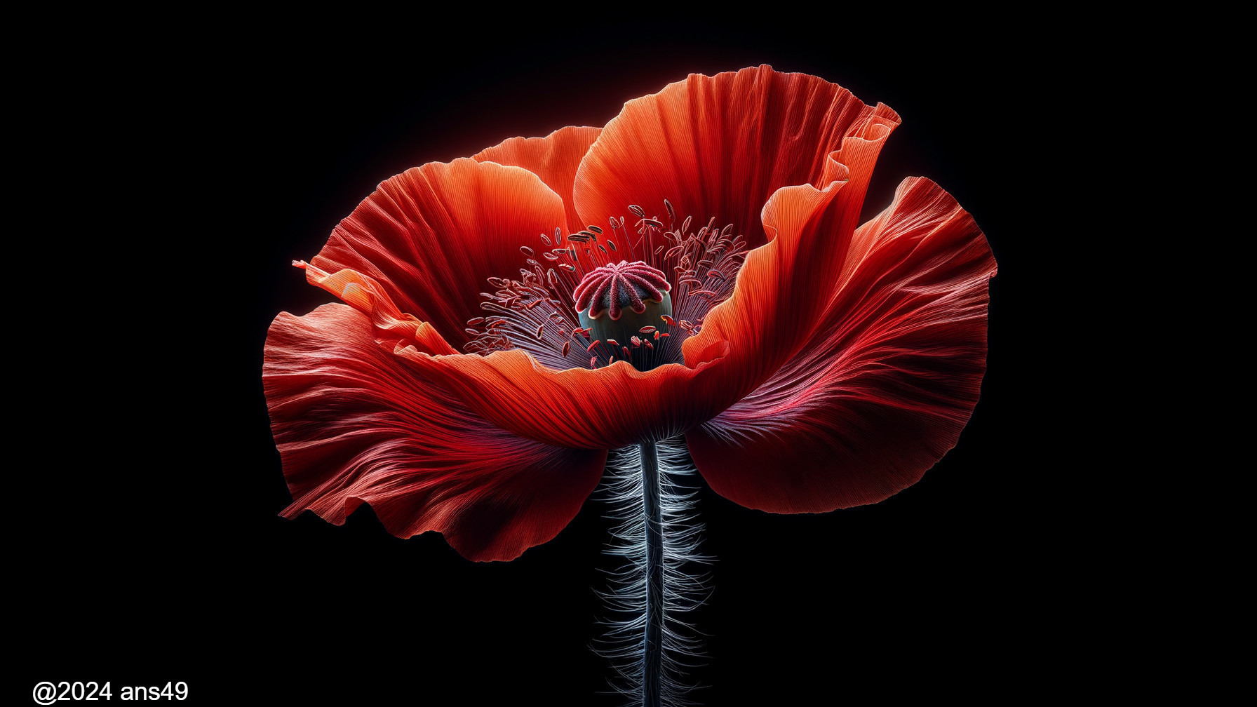 Vivid Red Poppy Against Dark Backdrop