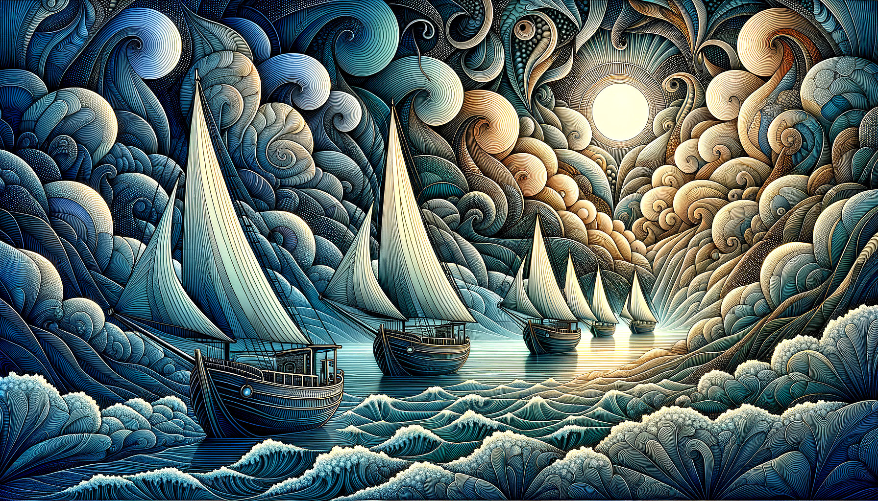 Moonlit Harbor: Picasso-Inspired Sailboat