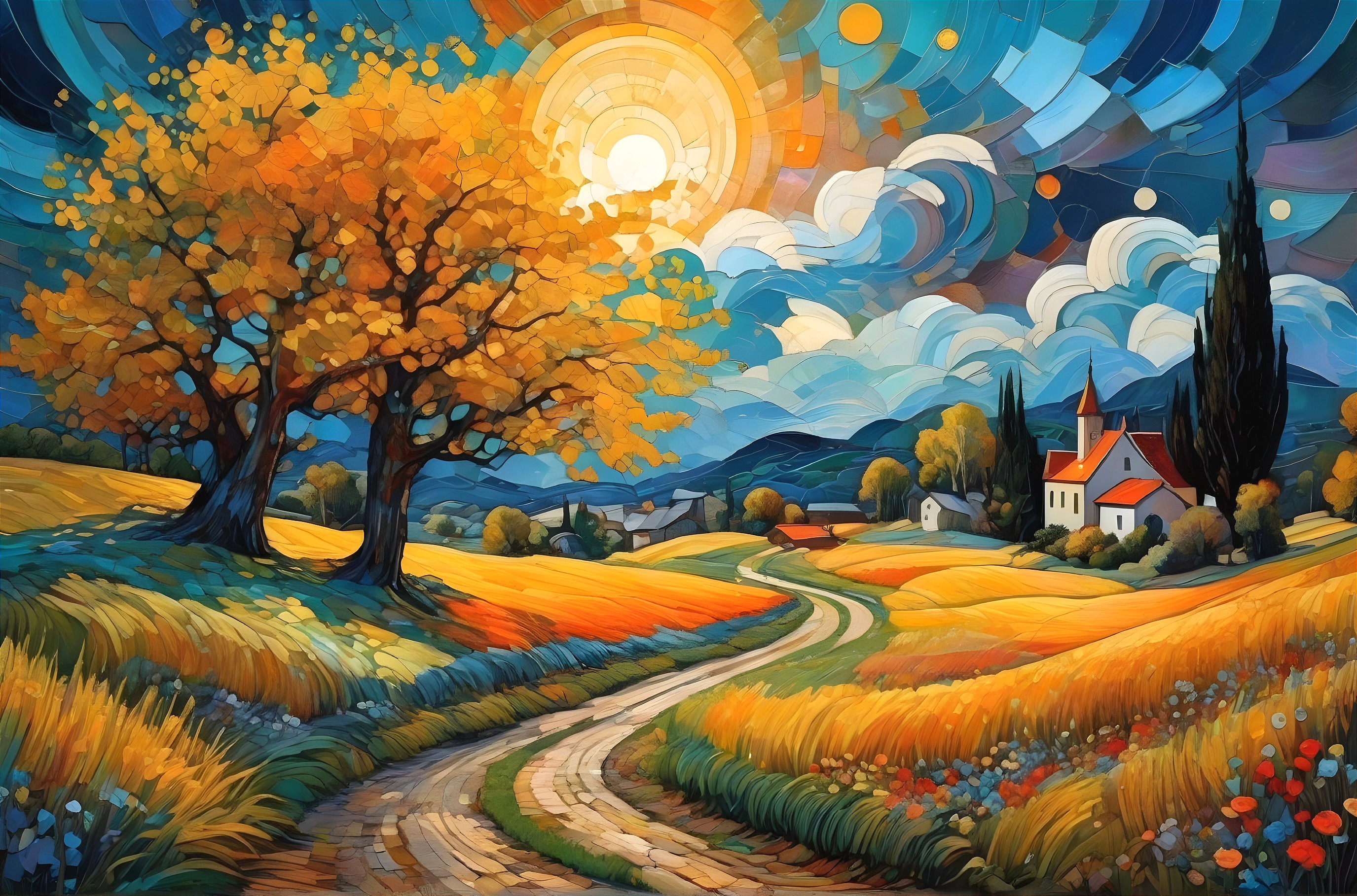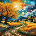 Village in a patchwork van Gogh style