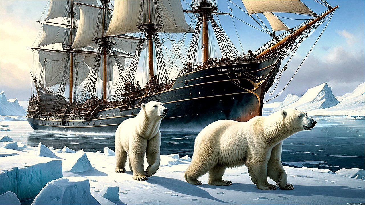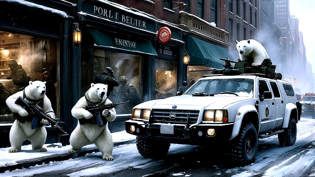 Polar Bear Cubs in a Whimsical Snowy Scene