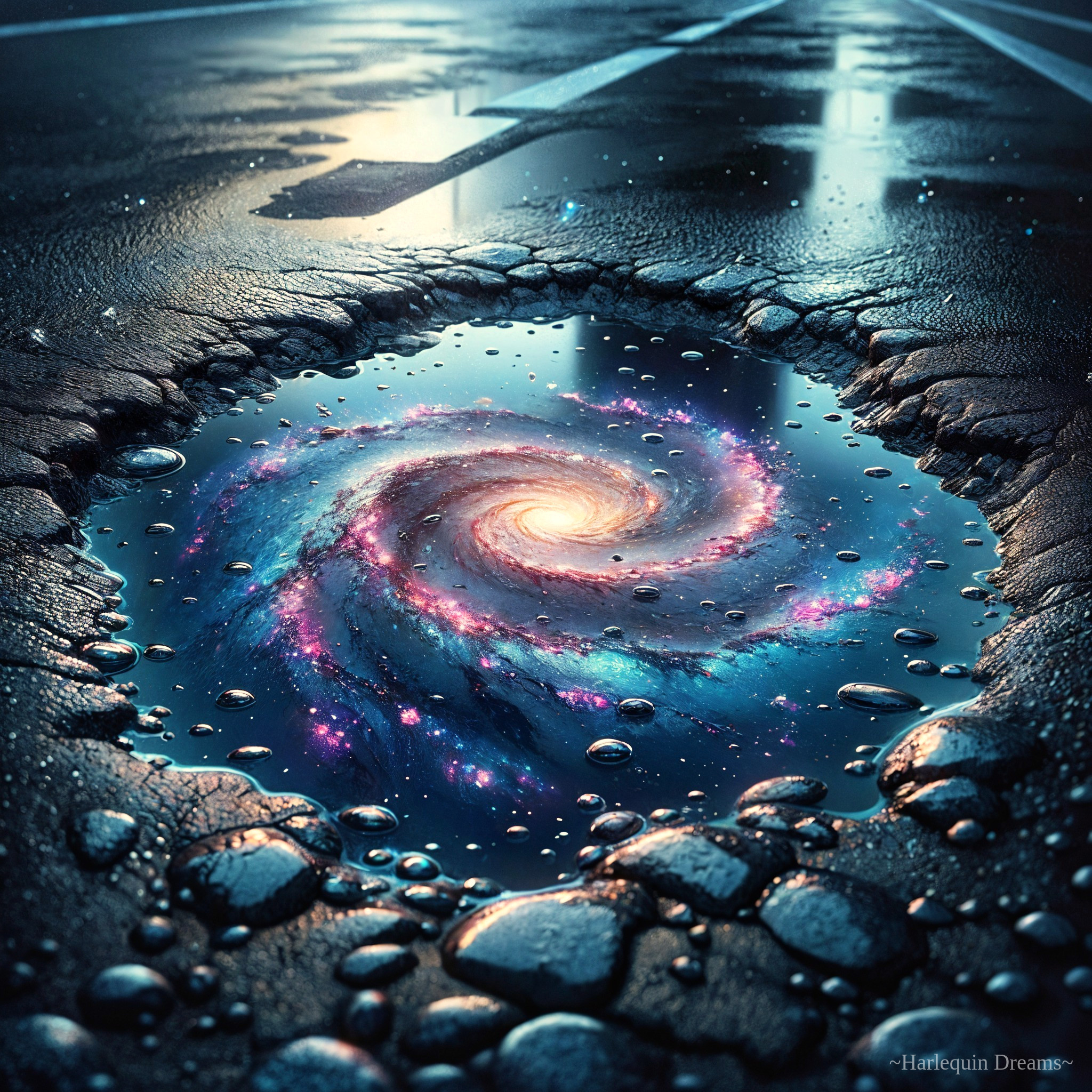 Galactic Reflections in a Puddle's Embrace