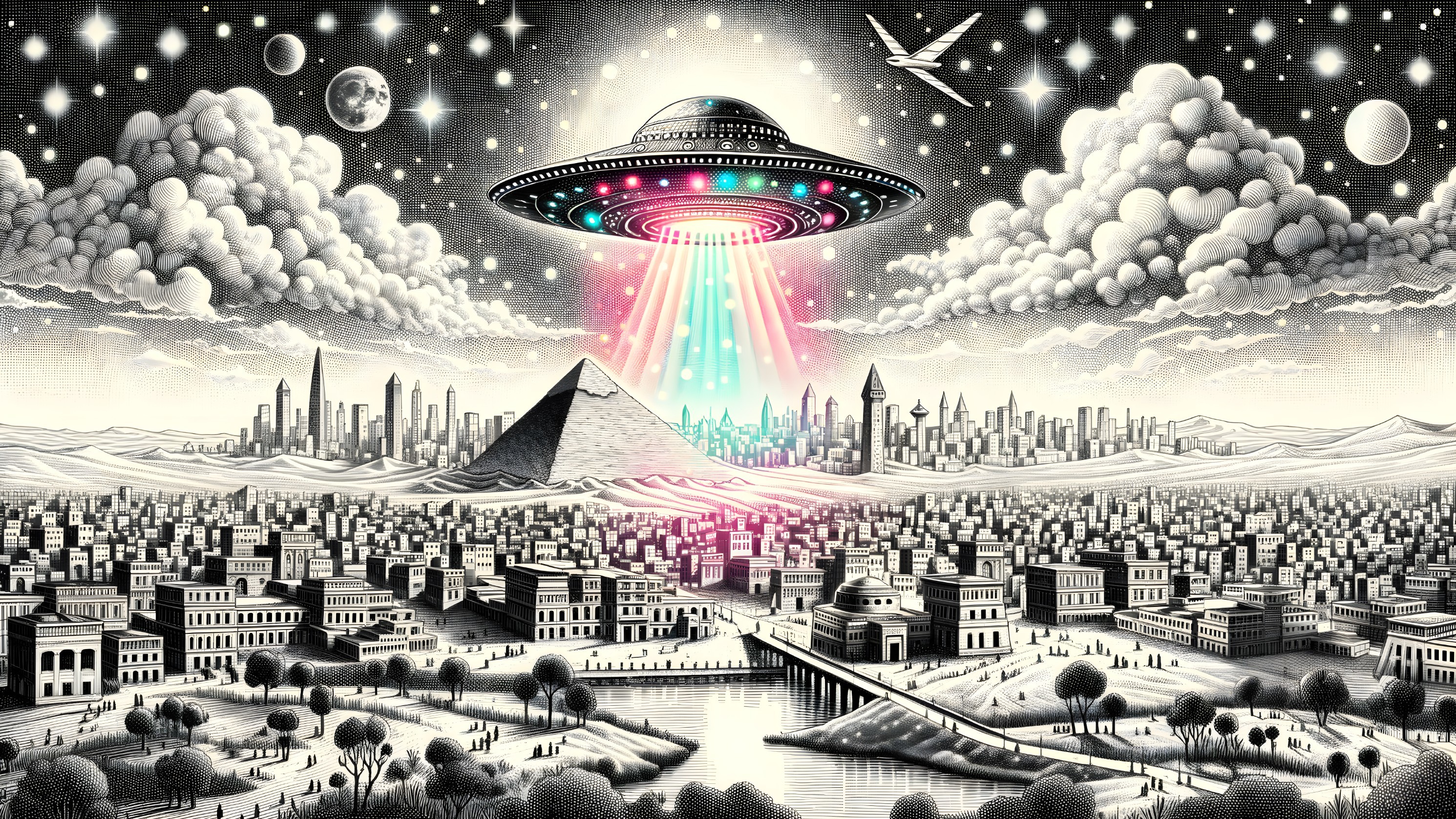 Enchanted Pyramids Under Cosmic Skies