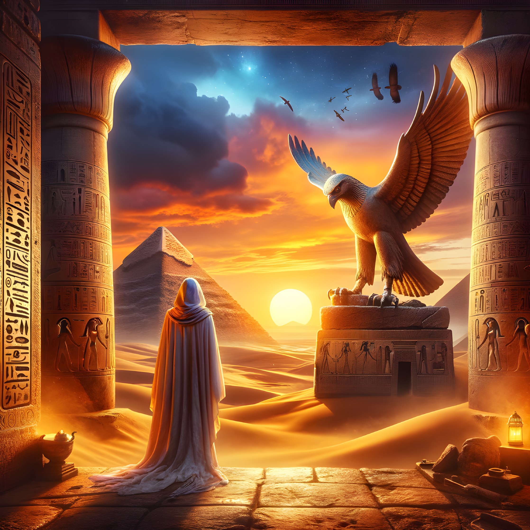 Sorcerer Amidst Mystical Illuminated Pyramids