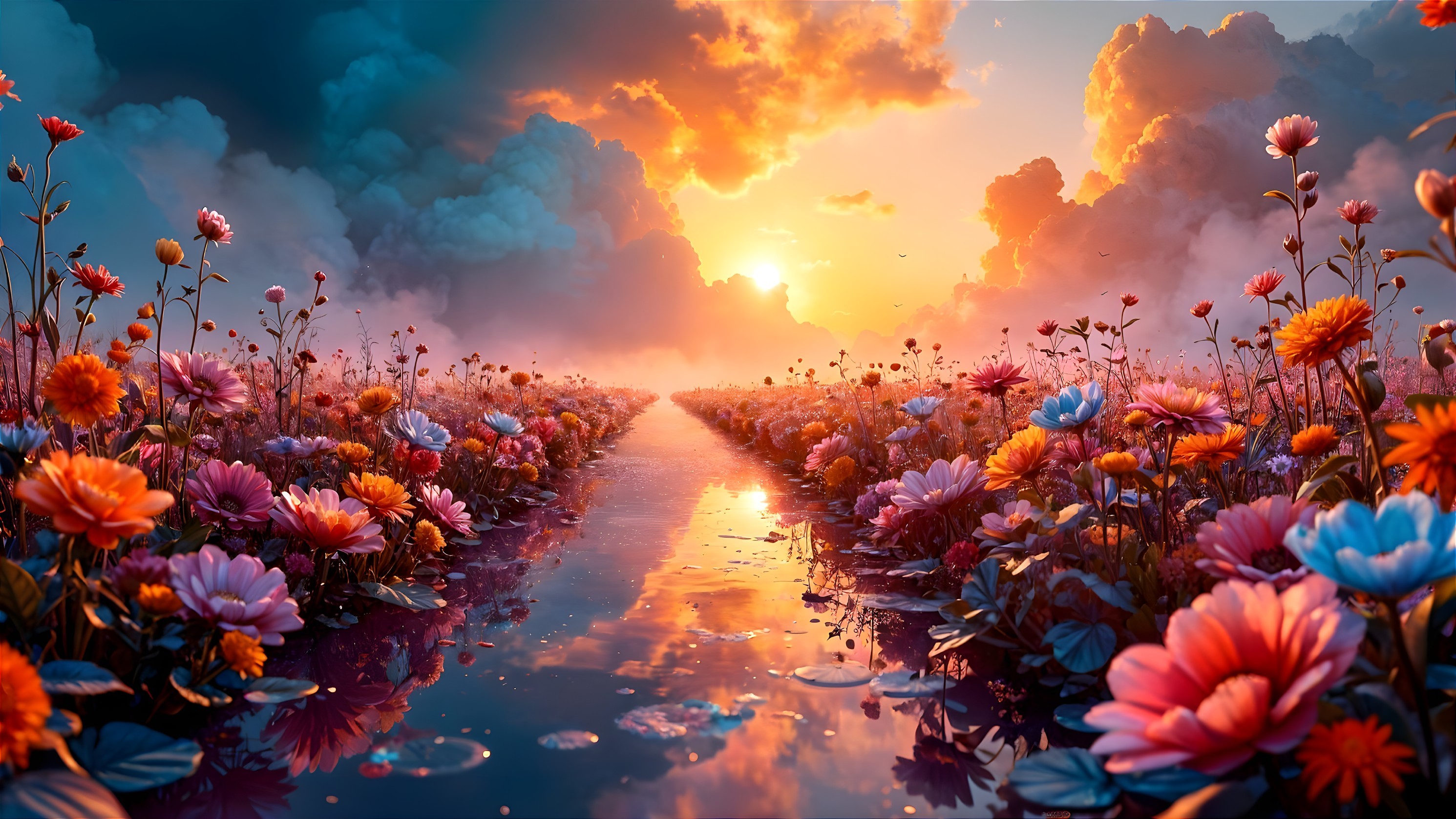 Flying Buttresses: SK 21:20250313. www.omarsolh.com Futuristic Oasis at Sunset Reflection