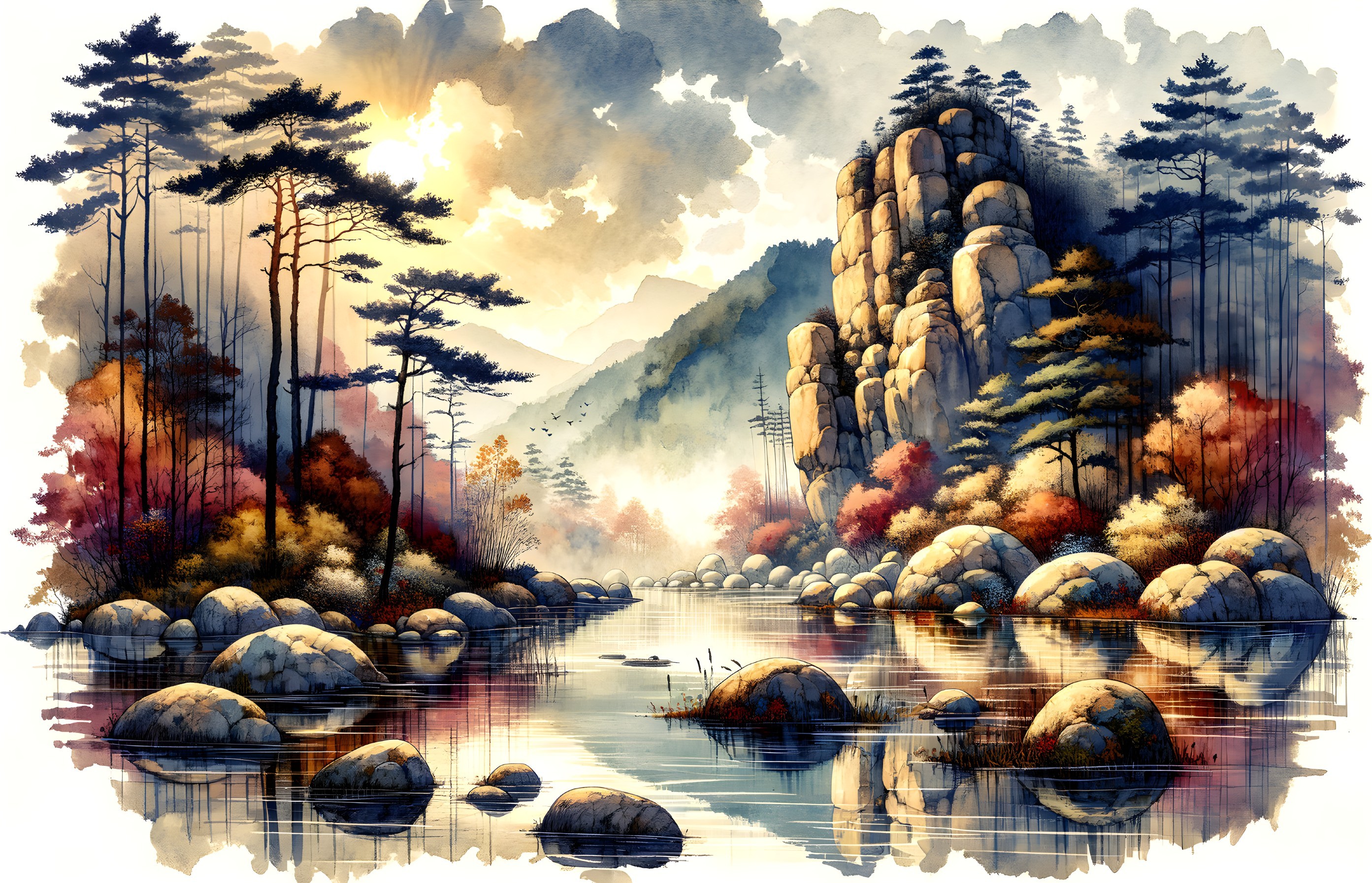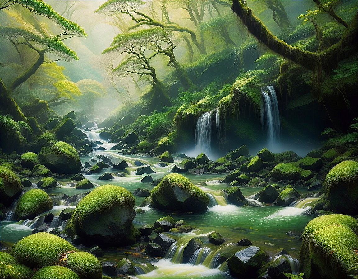 Enchanted Woodland: Sunlit Stream & Blue Flowers