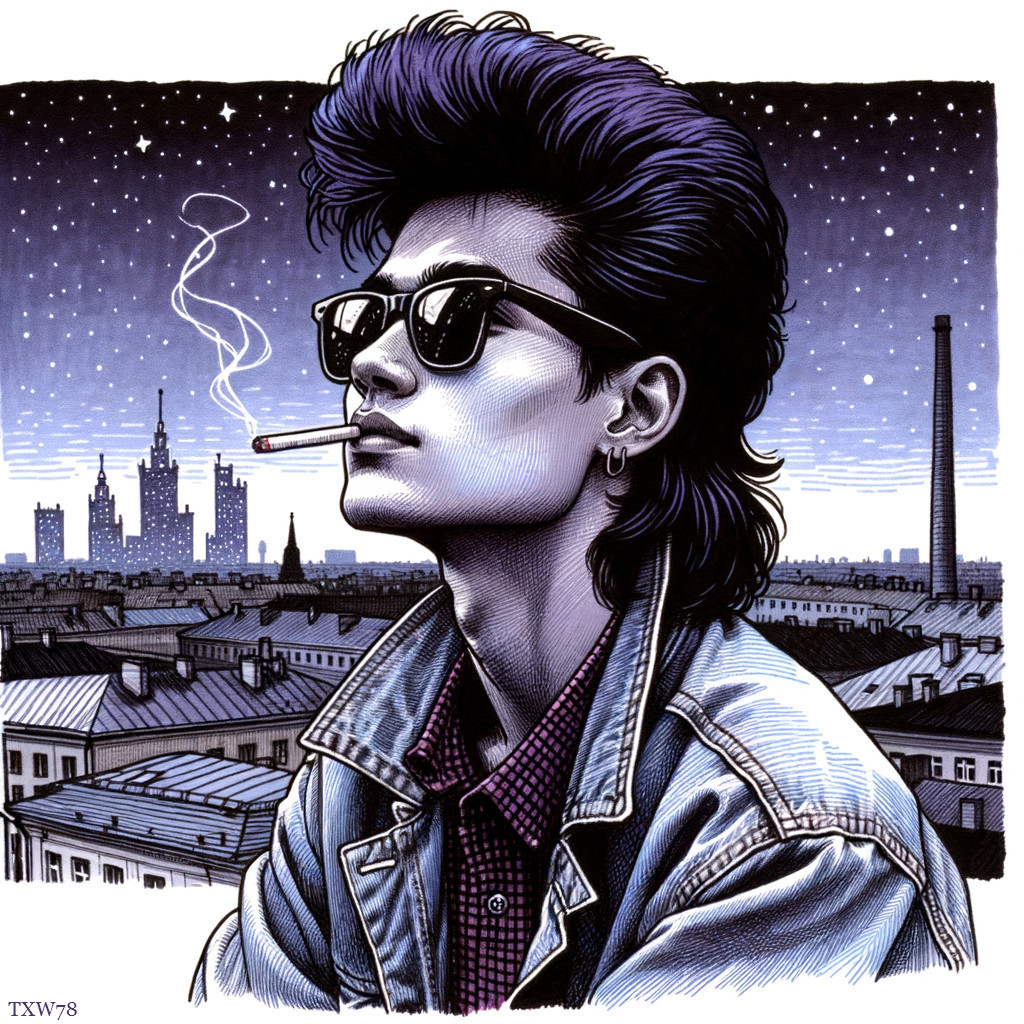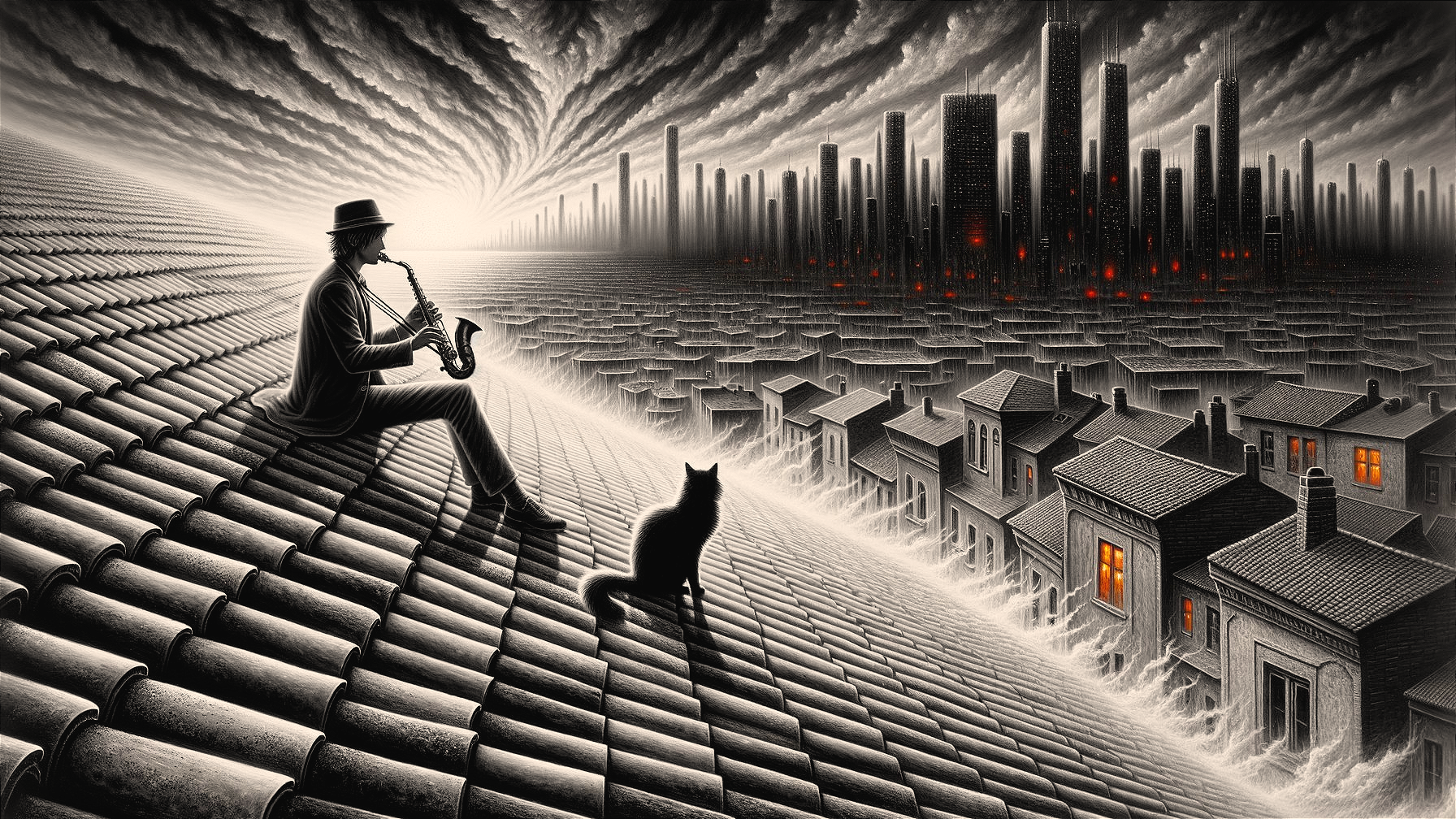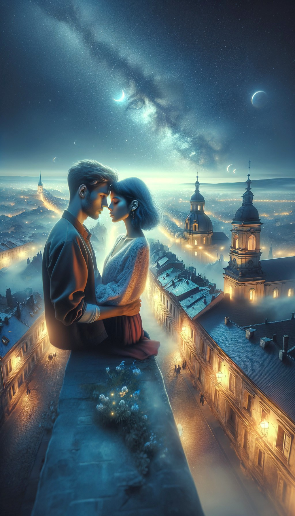 Twilight Rooftop Dreams of a Blue-Haired Girl