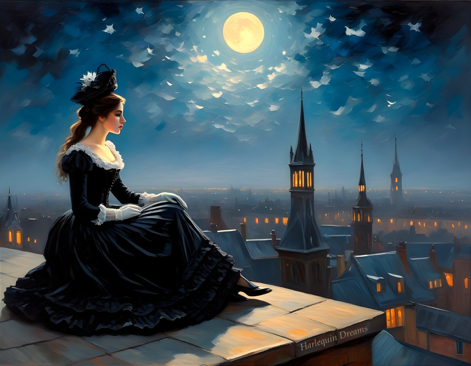 Moonlit Soul Ascension: A Surreal Rooftop Fantasy