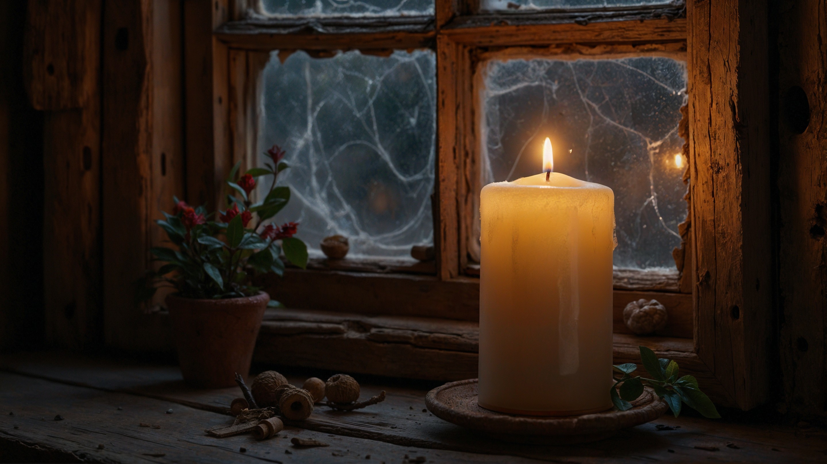 Cozy Candlelight on a Rustic Windowsill