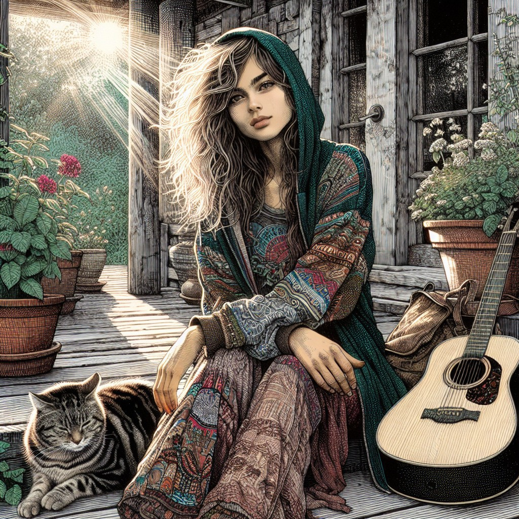 Enchanted Porch: Auburn Beauty & Feline Companion