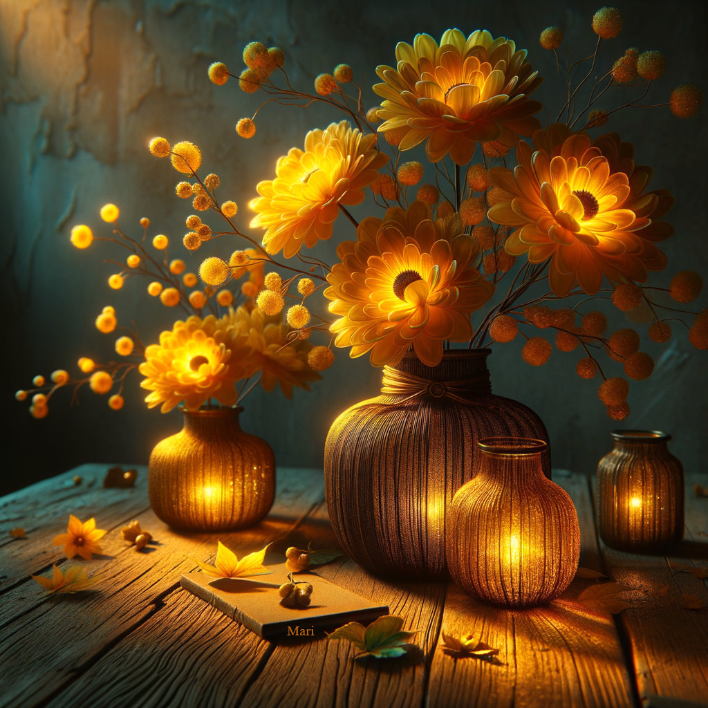 Cozy Still Life with Yellow Flowers and Candlelight