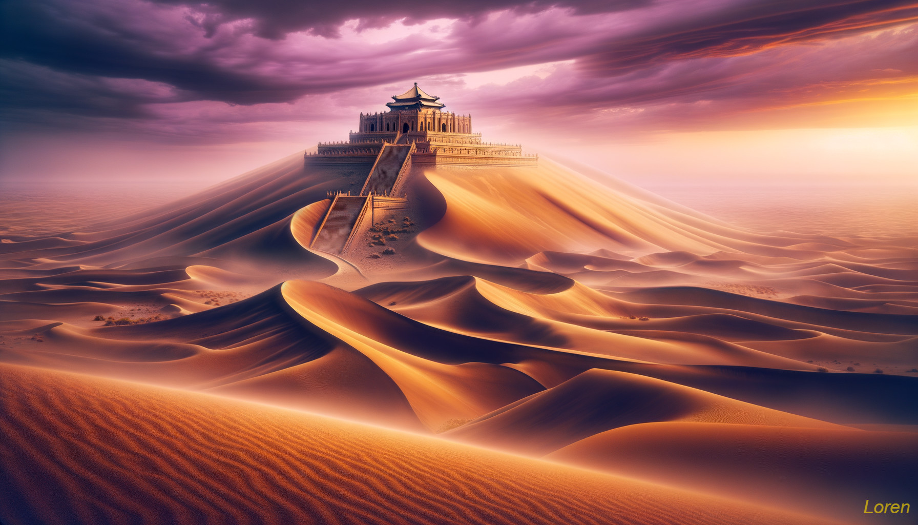 Mystical Sunset Over Desert Dunes