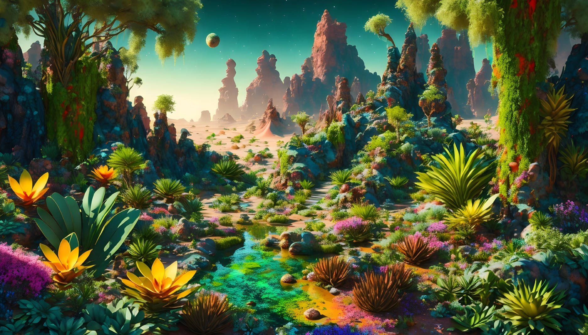 Moonlit Neon Pyramids: Otherworldly Terrain