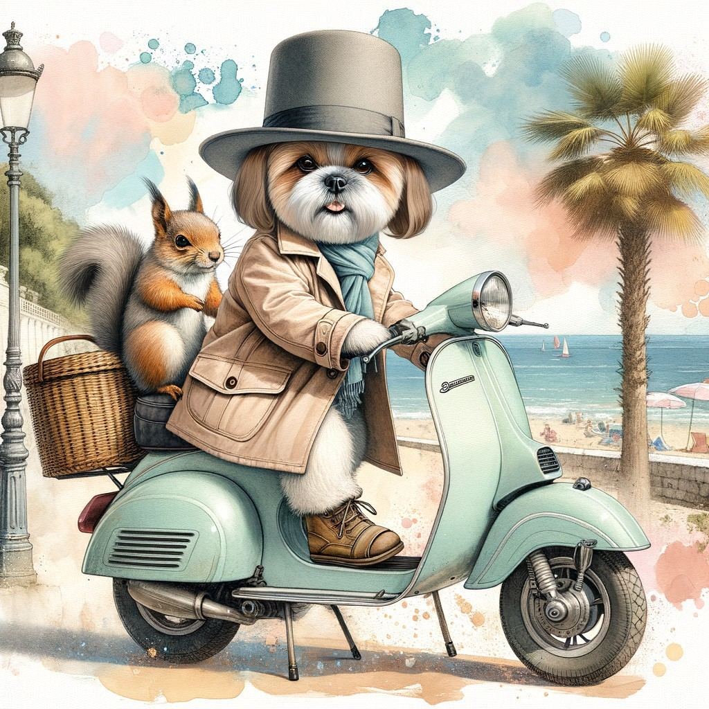 Shih Tzu and Squirrel by the Sea