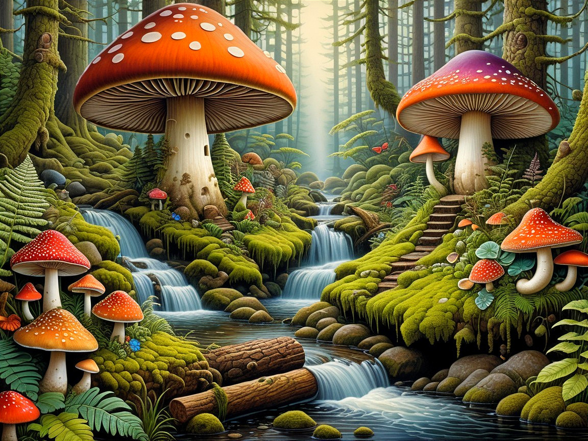 Whimsical mushroom forest