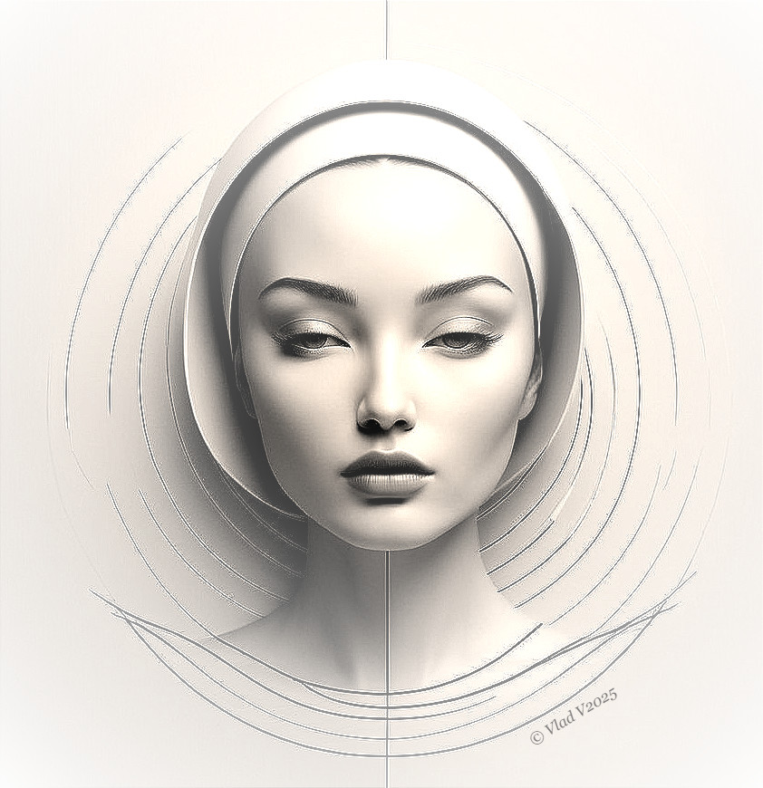 Tranquil Sculptural Face in Circular Harmony