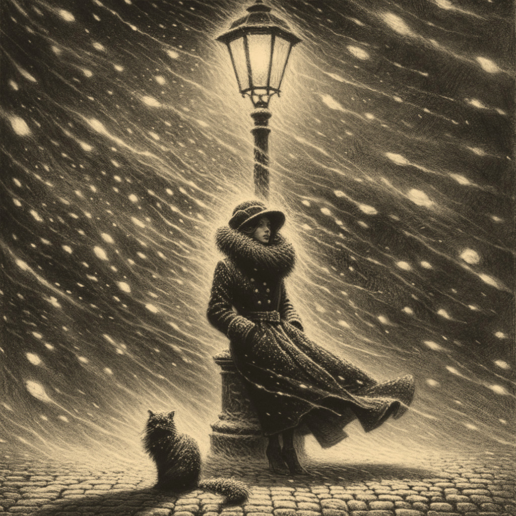 Bold Elegance in a Snowy Nightscape