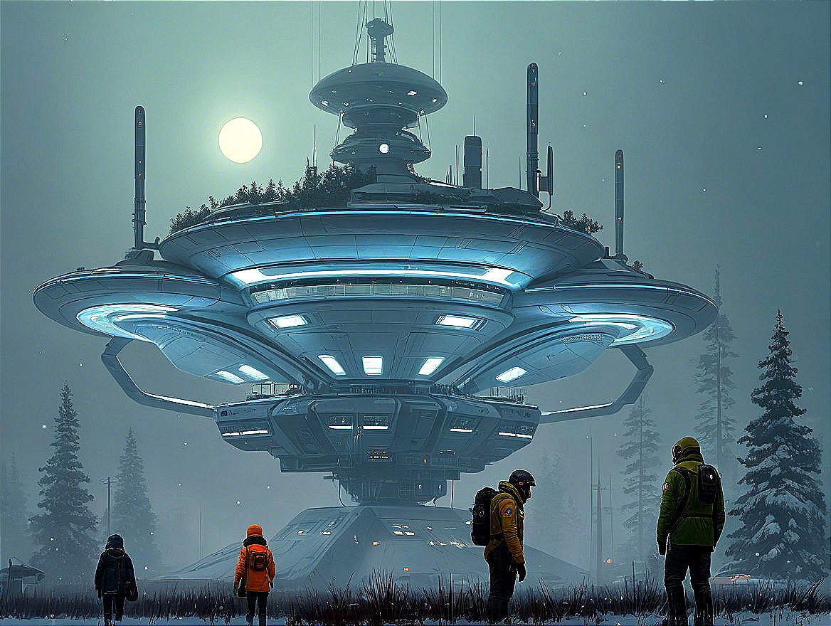 Extraterrestrial Encounter in Snowy Forest